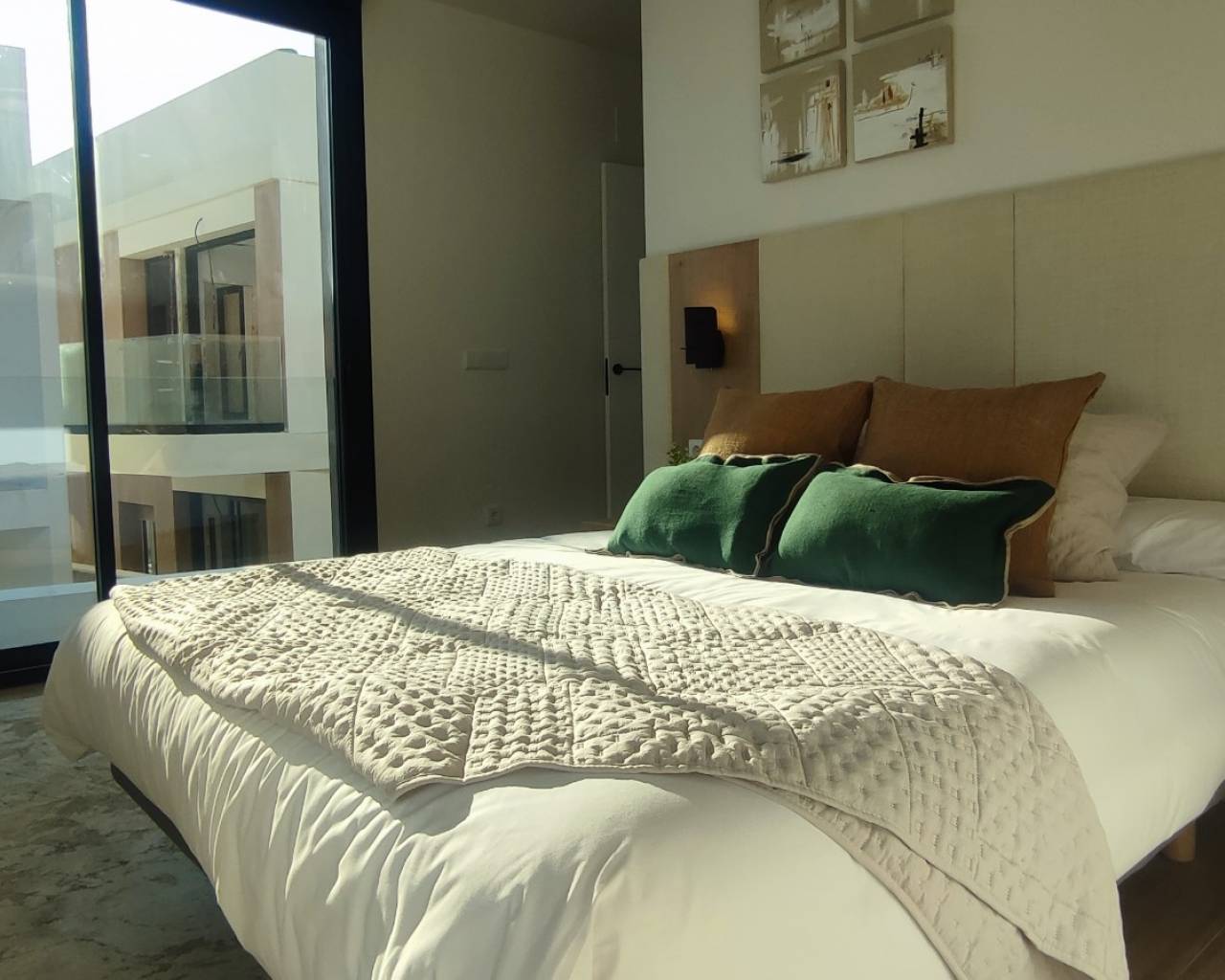 Esta impresionante villa se completa con piscina privada, cocina moderna con electrodomésticos integrados, aire acondicionado frío/calor, solárium en la azotea y persianas eléctricas.
