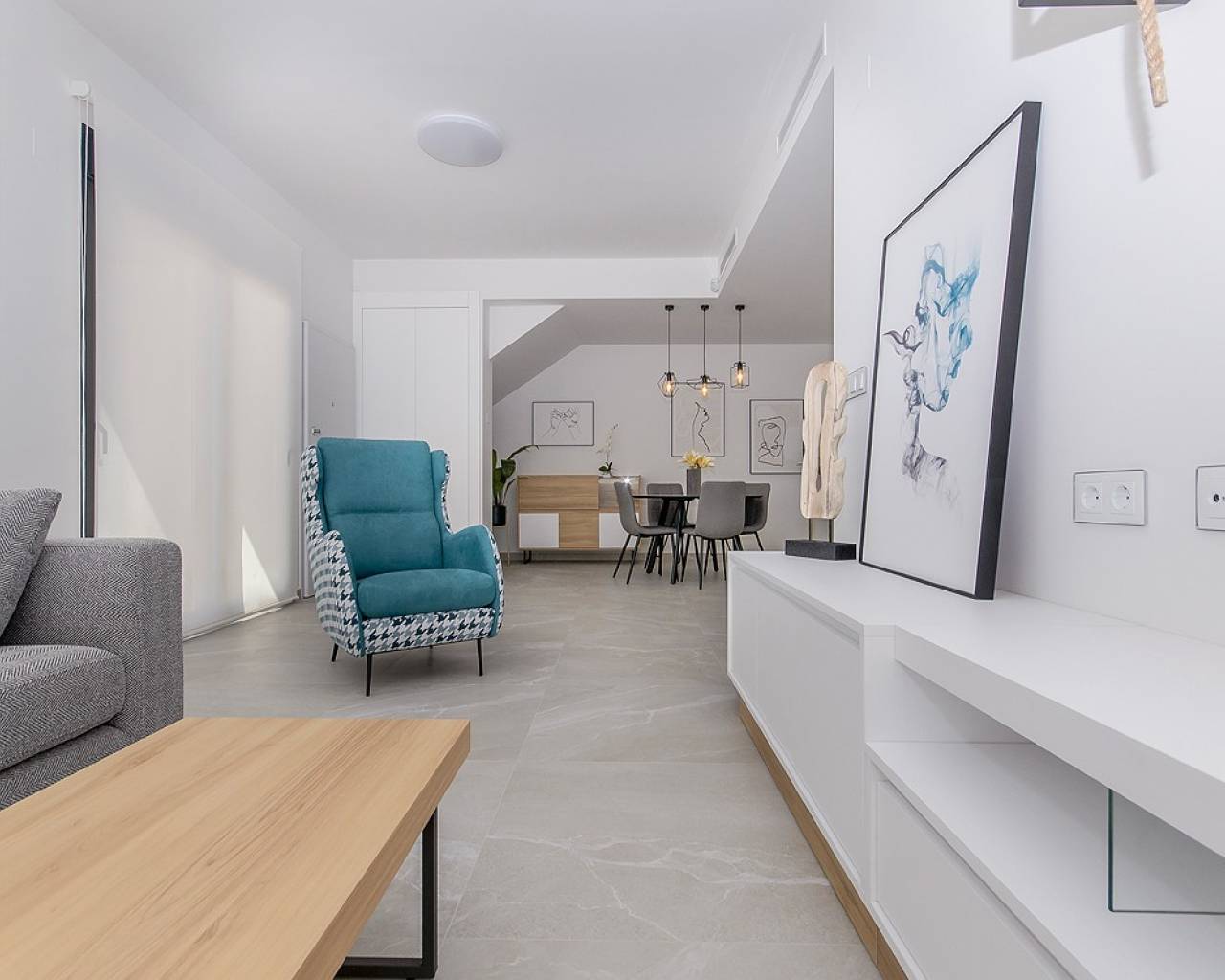 Este lujoso apartamento en planta baja está construido con los más altos estándares y está situado entre San Miguel y Villamartín, cerca del complejo de golf Las Colinas. La propiedad incluye una cocina moderna equipada con electrodomésticos, baños completos con mamparas de ducha y jardines comunitarios con piscina.