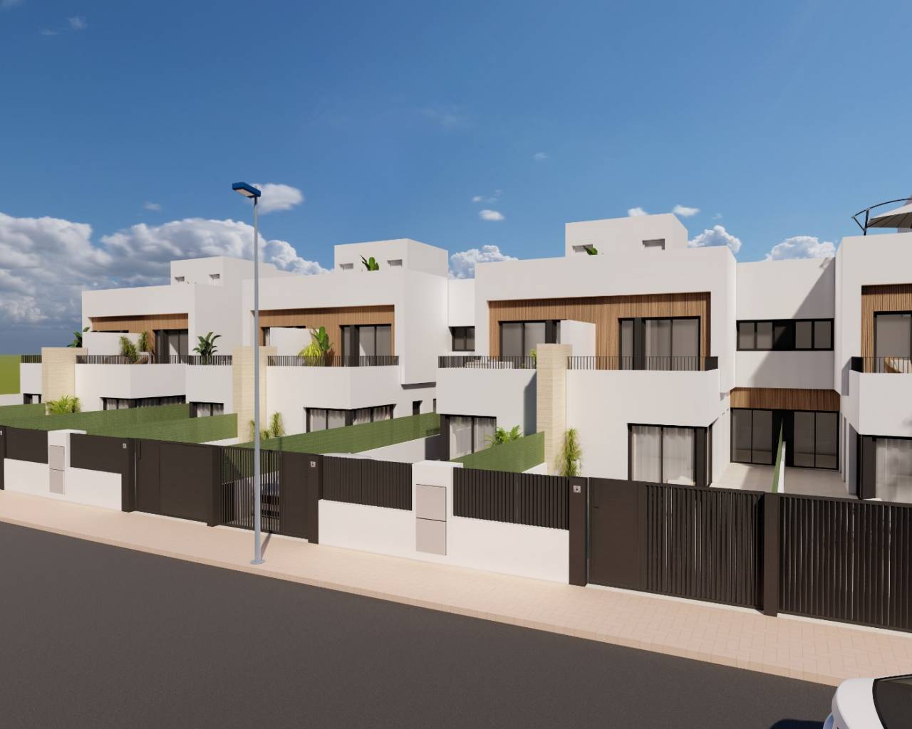 Residencial Rosa Morada es una promoción de villas modernas a estrenar ubicada en Santiago de la Ribera, en una urbanización consolidada, a tan solo 1,5 km de la hermosa playa y el paseo marítimo. Dispone de 12 villas en total, cada una con piscina privada, aparcamiento privado, cocina equipada con electrodomésticos, solárium opcional en la azotea e iluminación LED.