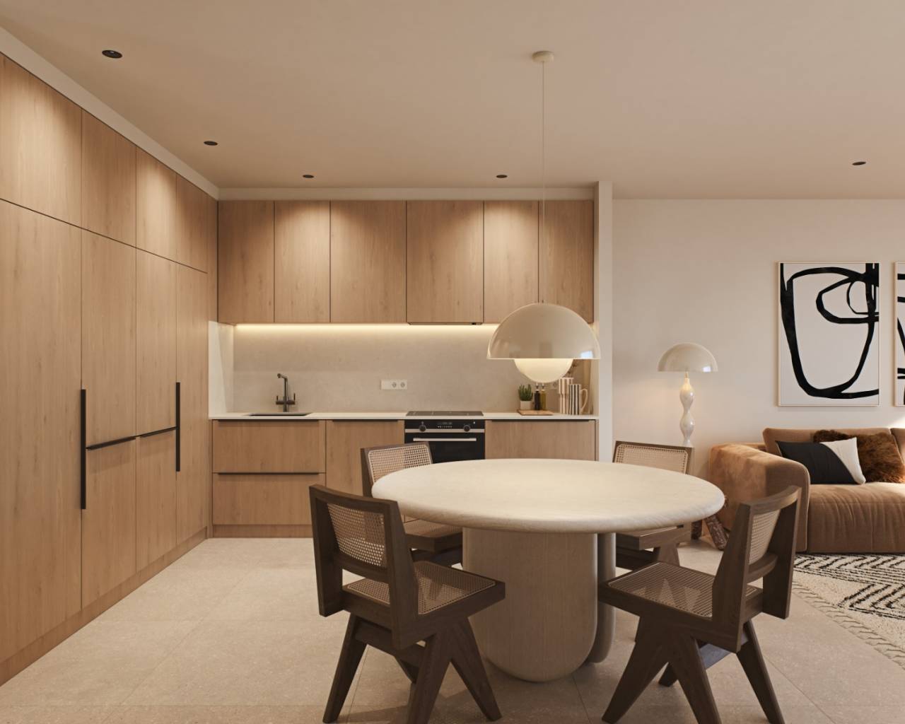 Hay 2 bloques de 12 apartamentos, con opciones en planta baja con amplios jardines privados, planta media con gran terraza y opciones de ático con solárium en la azotea.