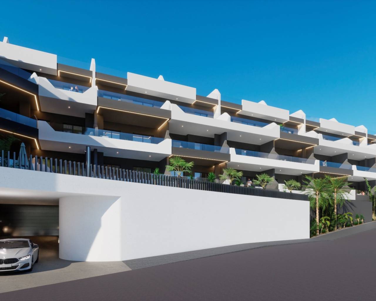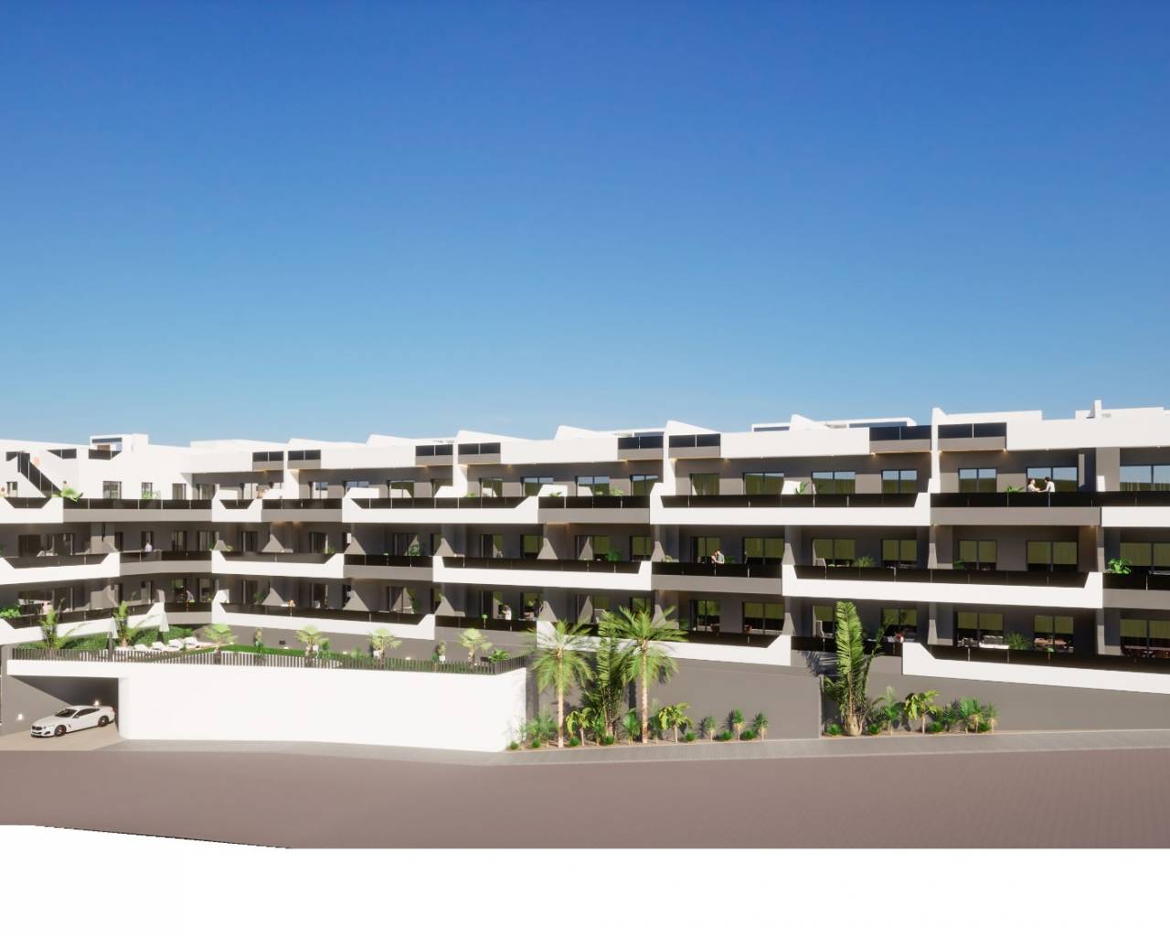 Disponemos de apartamentos en planta baja con jardín y terraza privados, plantas intermedias con terraza y áticos con solárium privado en la azotea. Disponemos de preciosos jardines comunitarios con piscina y opción de aparcamiento subterráneo seguro y trastero.