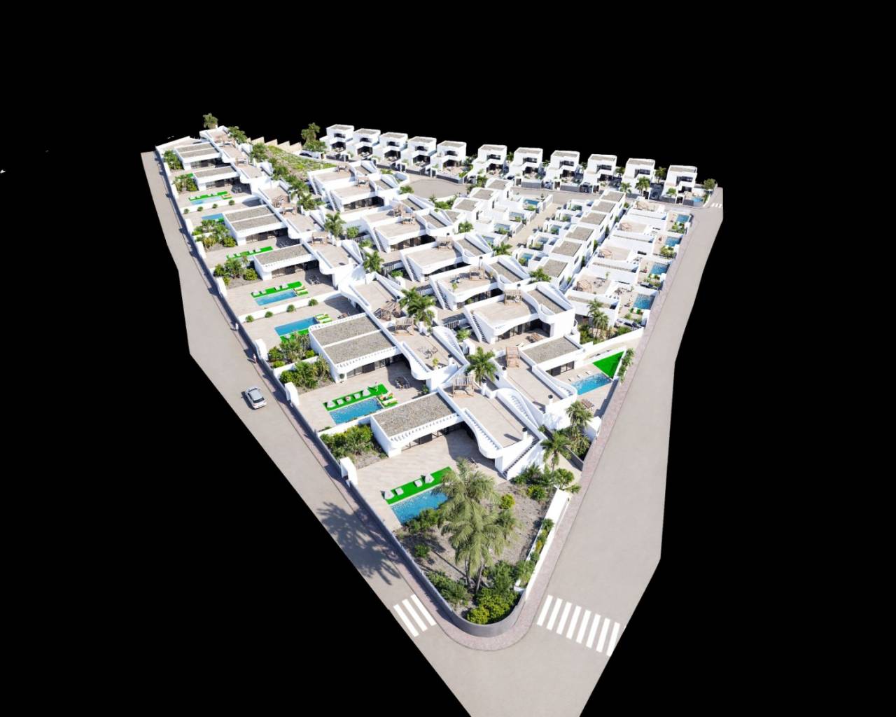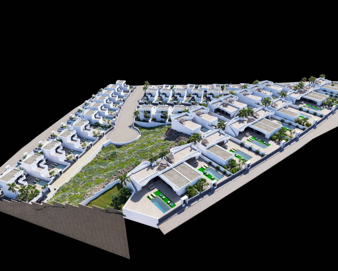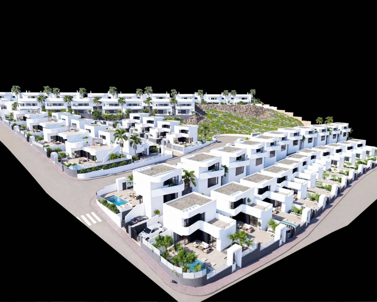 Hay 3 modelos diferentes para elegir y cada propiedad incluye piscina privada, aire acondicionado frío/calor por conductos preinstalado, toda la iluminación, baños completos con mamparas de ducha y cocina moderna con electrodomésticos empotrados.