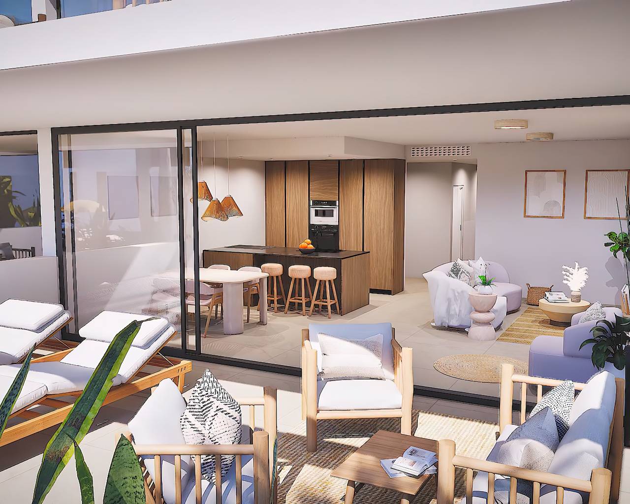 Este impresionante apartamento nuevo consta de un espacioso salón / comedor con puertas de patio de ancho completo que conducen a la terraza soleada con vista a los jardines y la piscina, una cocina abierta con electrodomésticos equipados que incluyen horno, vitrocerámica, extractor, refrigerador / congelador integrado y lavavajillas, lavadora y microondas, lavadero, un dormitorio principal con armarios empotrados y baño en suite, dos dormitorios dobles más con armarios empotrados y un baño de invitados.
