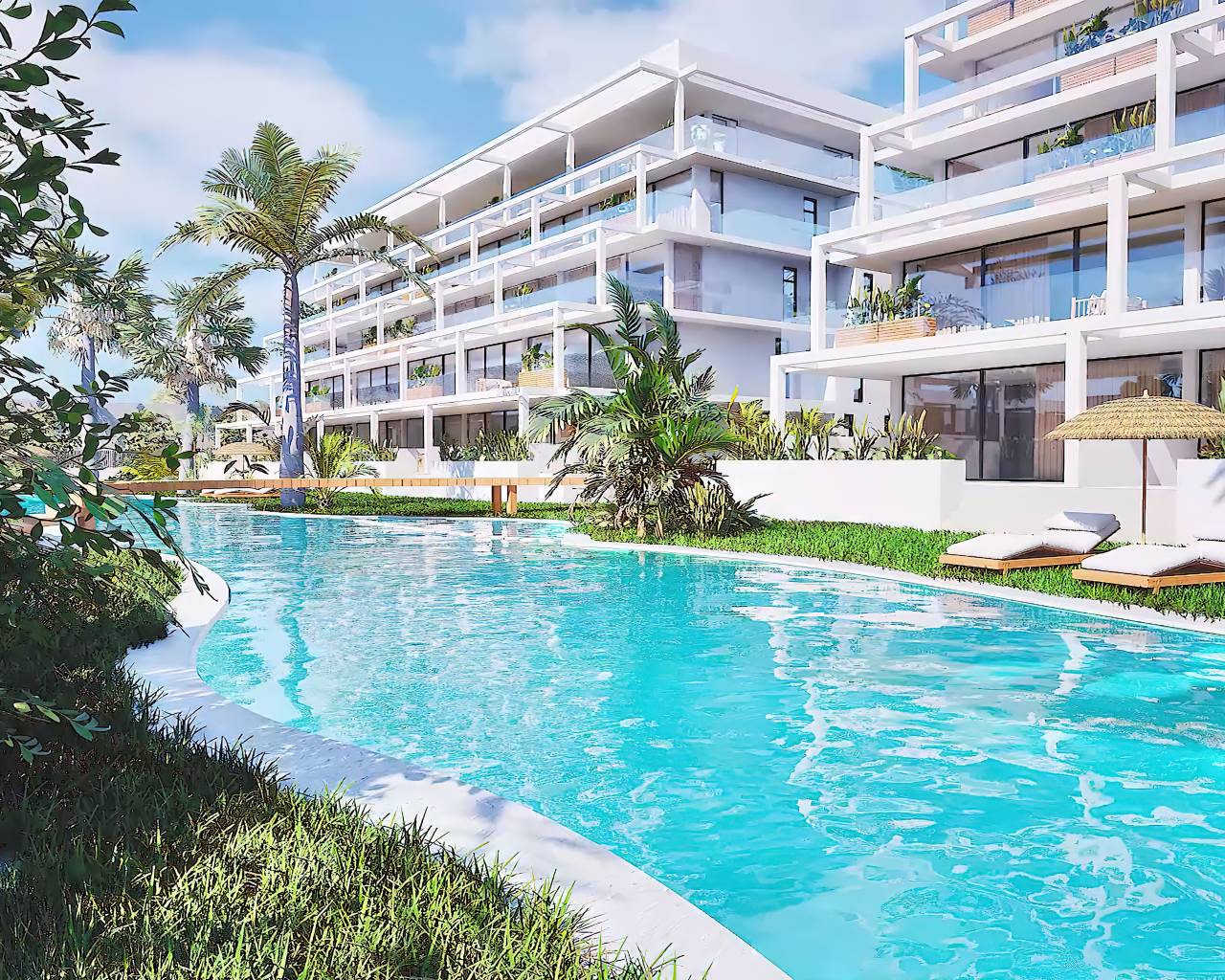 Estos lujosos y modernos apartamentos se encuentran a solo 300 metros de la playa de Mar de Cristal, cerca del animado pueblo de Los Belones, en La Manga, en el Mar Menor. En esta exclusiva urbanización de El Lago, podrá elegir entre apartamentos de 2 o 3 dormitorios en planta baja con jardín, entreplanta con terraza o ático con solárium en la azotea. Las viviendas están construidas con los más altos estándares de calidad y cuentan con cocina moderna con electrodomésticos, preciosos jardines comunitarios con piscina, aparcamiento subterráneo seguro y trastero.