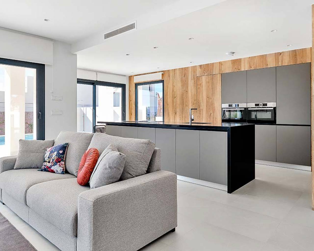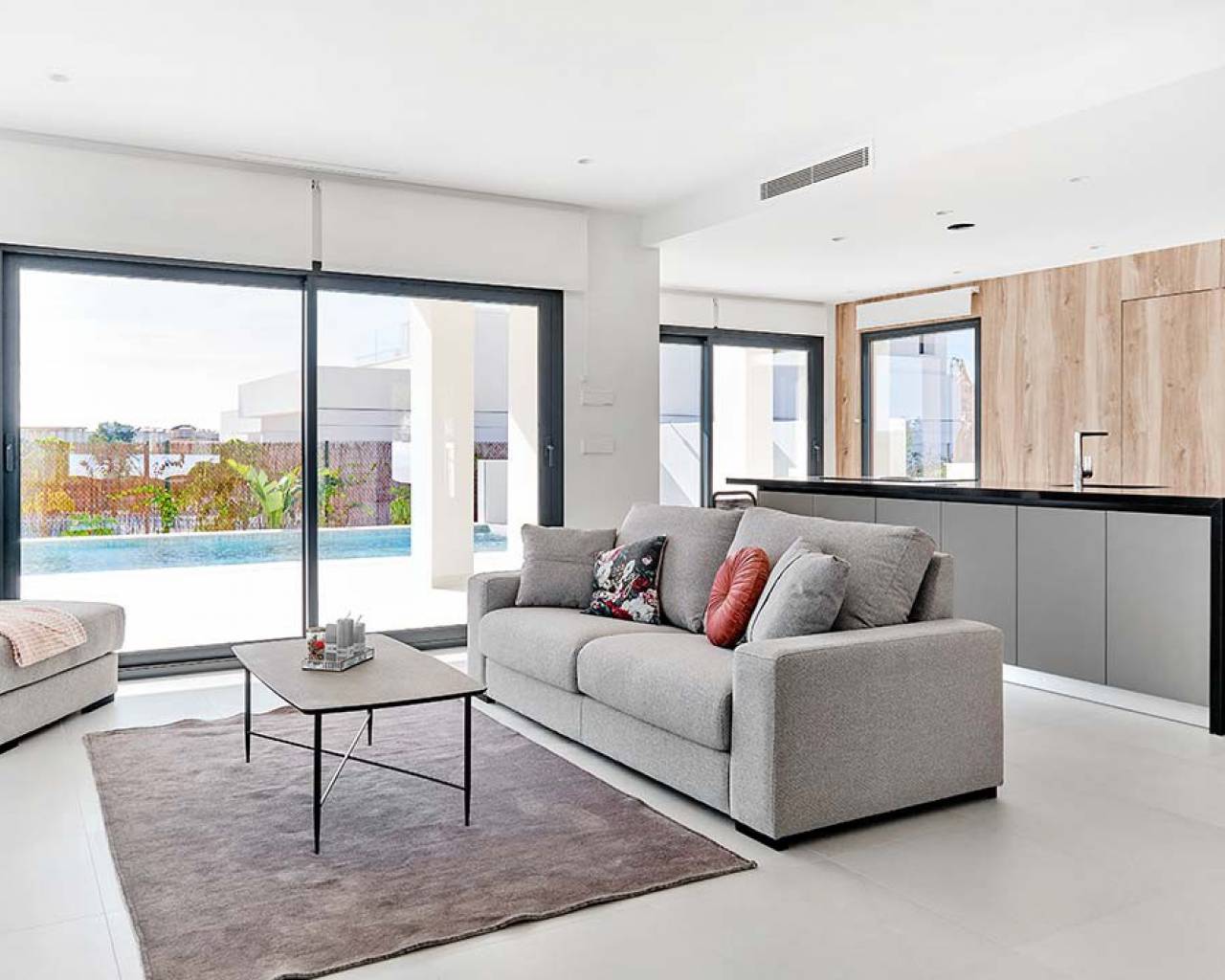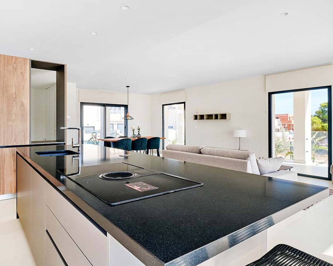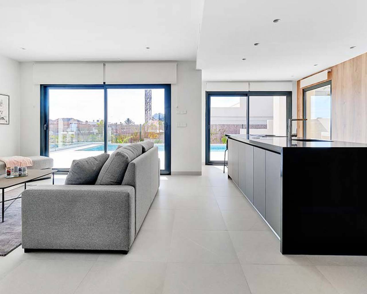 Esta villa de lujo consta de un gran salón de planta abierta con puertas de patio de longitud completa que dan al jardín con piscina, una cocina moderna con isla y electrodomésticos empotrados que incluyen horno, vitrocerámica, extractor, nevera / congelador, lavadora, lavavajillas y microondas. , lavadero, comedor, un gran dormitorio con armarios empotrados y baño en suite, dos dormitorios dobles más con armarios empotrados y un baño completo con suelo radiante.
