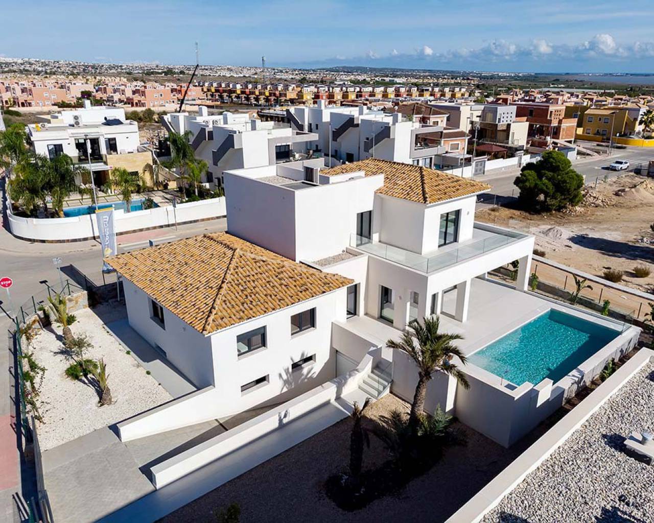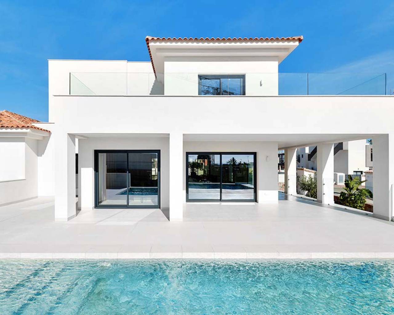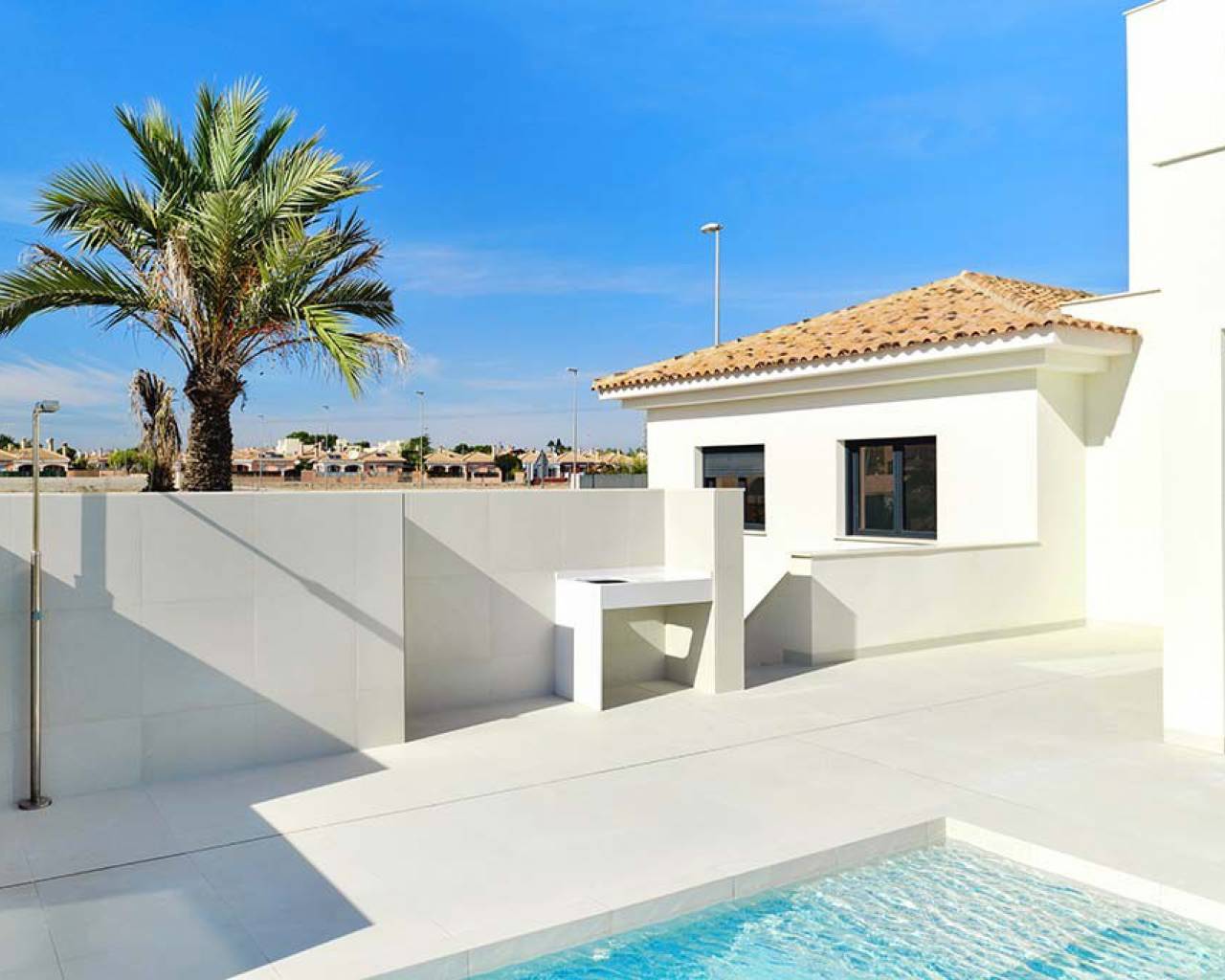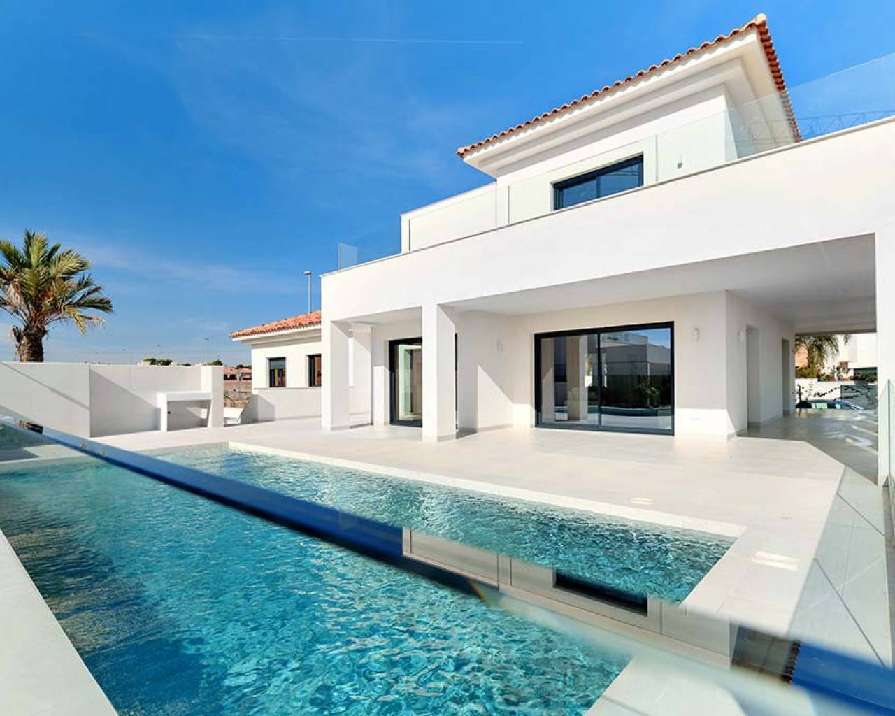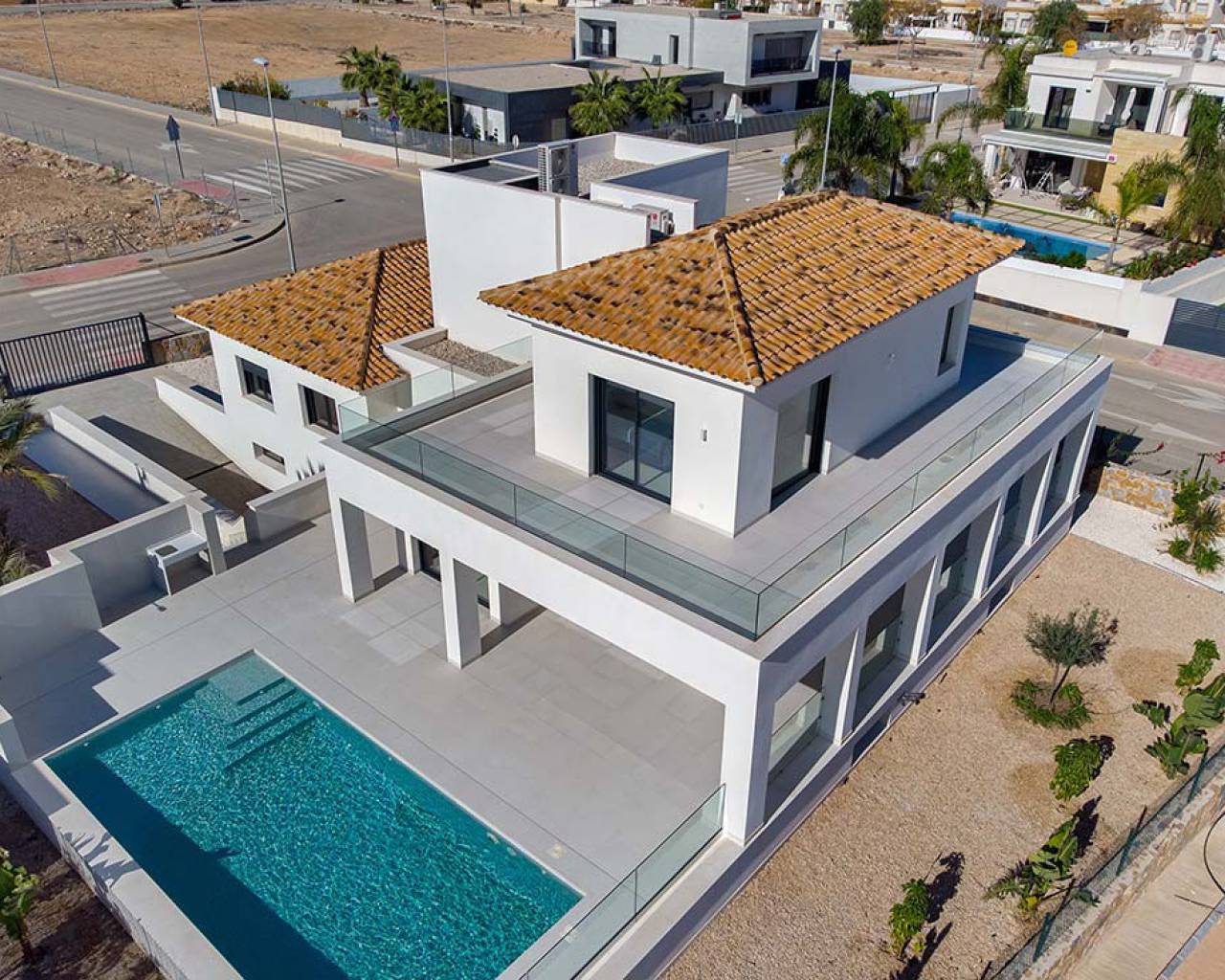 Esta moderna villa independiente de alta calidad de 4 dormitorios y 4 baños con piscina privada está situada en Los Montesinos, a pocos pasos de bares, tiendas y restaurantes. Esta impresionante propiedad está completa y lista para entrar a vivir e incluye una piscina privada de 8,75 x 4 metros, bajo construcción con garaje, aire acondicionado frío / calor, cocina moderna con electrodomésticos empotrados, iluminación interior y exterior y hay un ascensor con acceso a TODOS LOS PISOS.