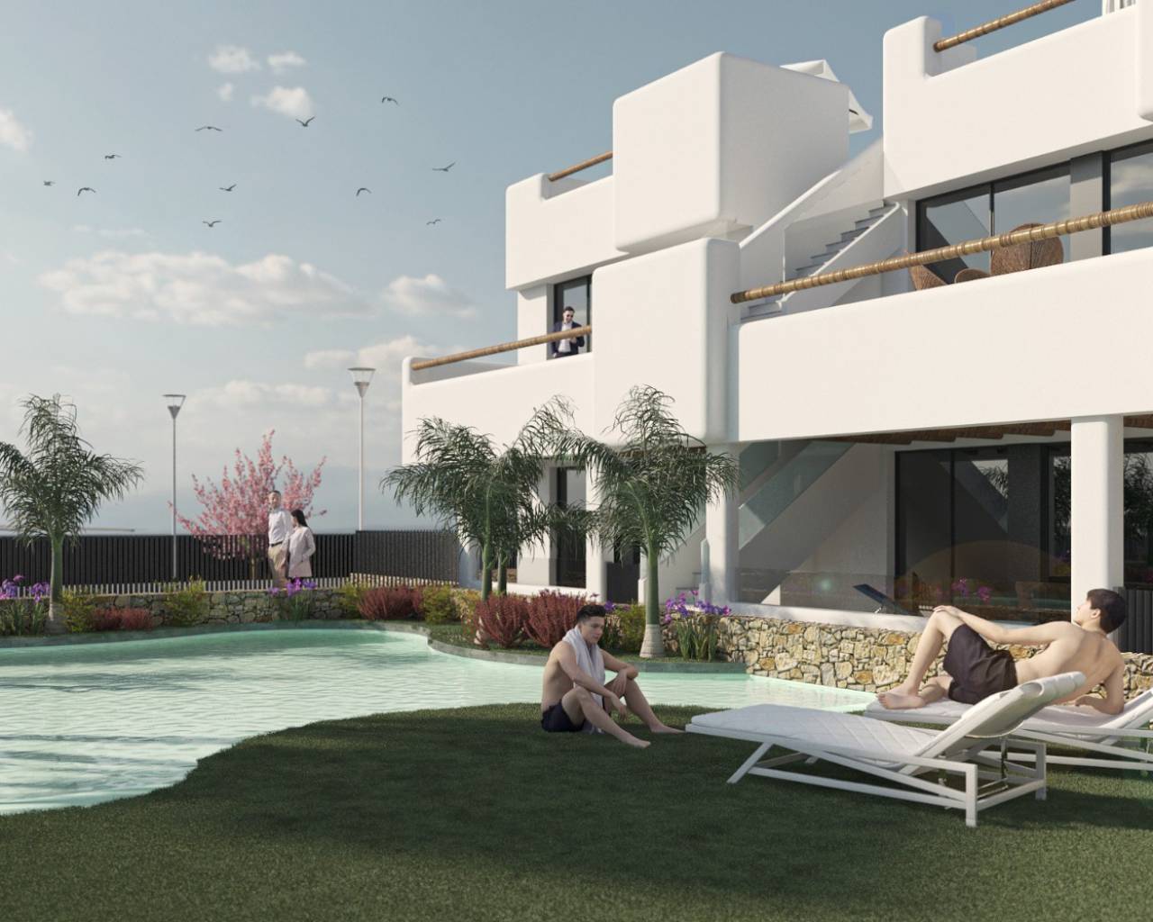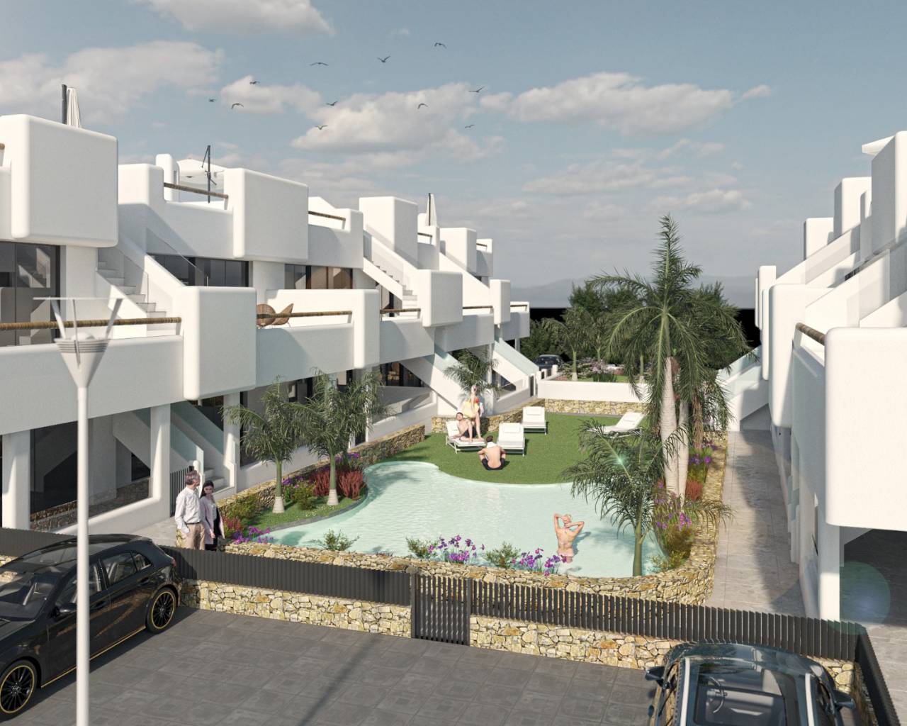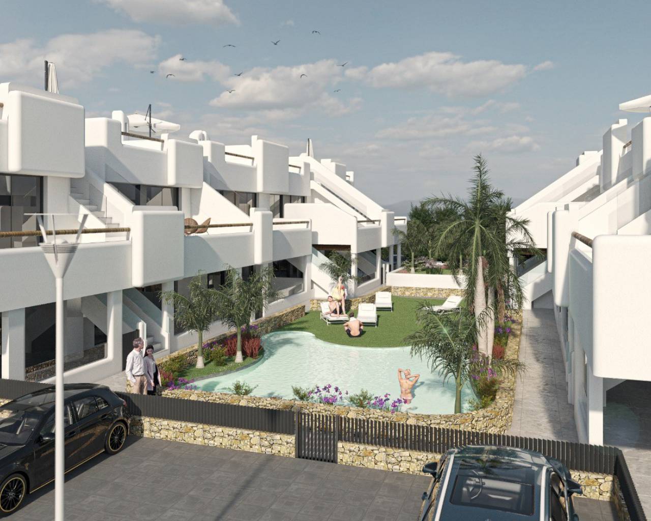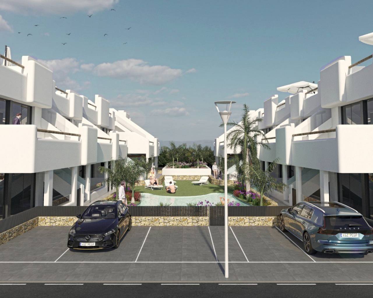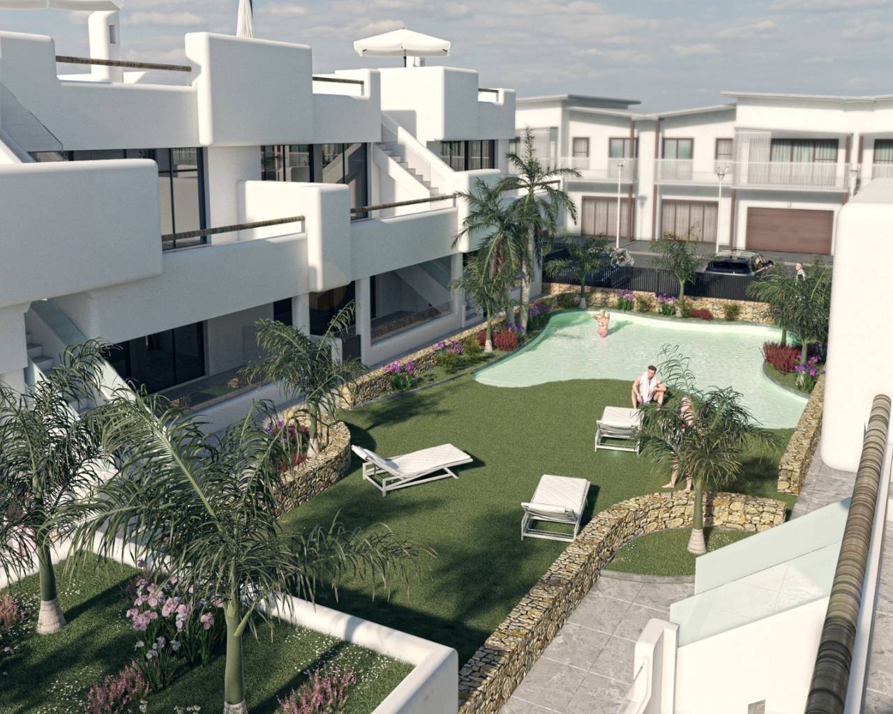 Residencial Tropical Beach en Santiago de la Ribera está situado a 100 metros de la playa, un exclusivo desarrollo de 20 apartamentos de lujo que consta de 10 propiedades en planta baja con jardín y 10 áticos con solarium privado en la azotea. Este hermoso desarrollo tiene hermosos jardines comunitarios con piscina, estacionamiento privado y cada apartamento incluye una cocina equipada con electrodomésticos, iluminación LED, aire acondicionado frío / calor y calefacción por suelo radiante en los baños. Las propiedades del ático también incluyen una cocina al aire libre, pérgola, barbacoa, césped artificial y una ducha de agua fría / caliente.