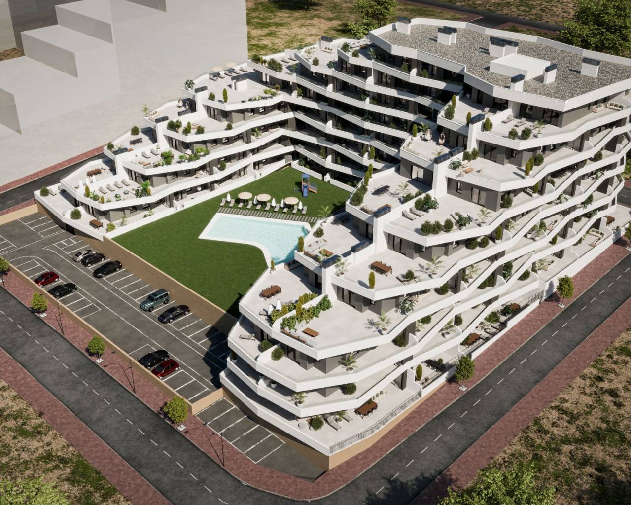 Il existe la possibilité de maisons de 2/3 chambres au rez-de-chaussée avec jardin privé, à l'étage intermédiaire avec grand solarium et en penthouse avec grande terrasse/solarium. Ce complexe de luxe dispose de beaux jardins communaux avec piscine, bassin pour enfants, ascenseurs à tous les étages, aire de jeux pour enfants et parking privé avec stockage en option.