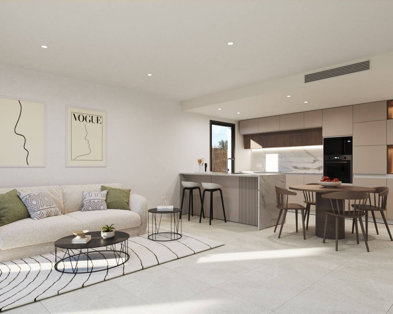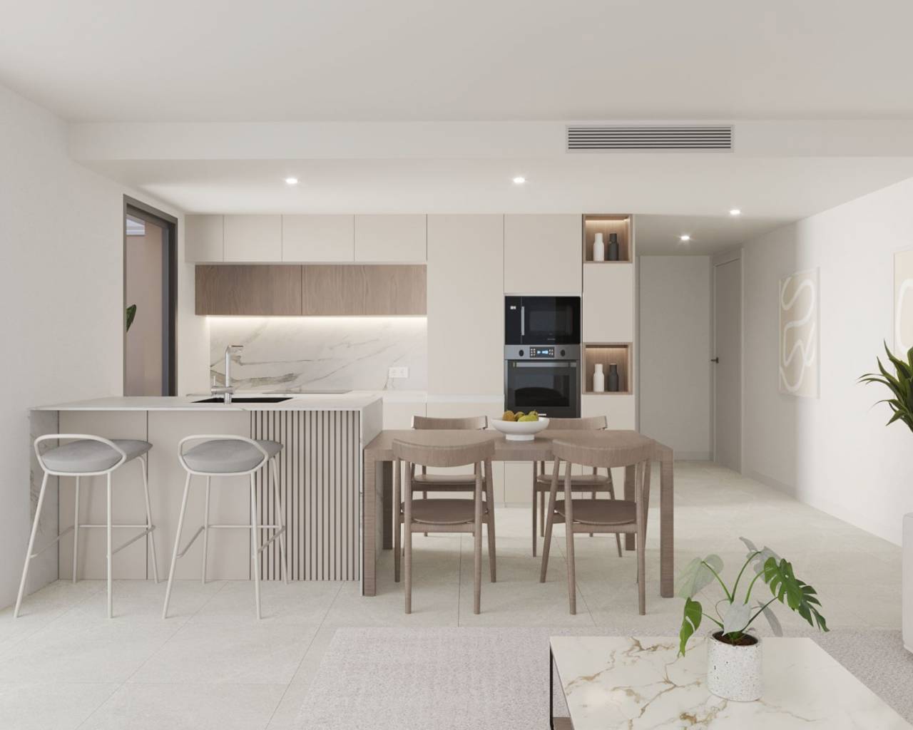 Chaque appartement dispose d'une cuisine moderne avec appareils électroménagers, d'un éclairage LED, de la climatisation chaud/froid, de volets électriques et chaque maison dispose également d'une place de parking souterrain et d'un débarras.