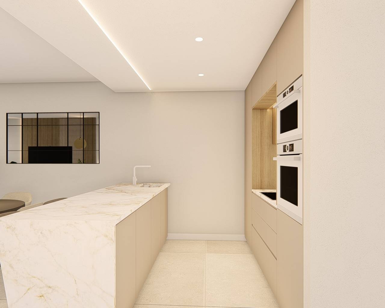 Ce penthouse moderne de 3 chambres comprend un salon ouvert avec portes-fenêtres donnant sur une terrasse ensoleillée, une salle à manger, une cuisine moderne équipée d'appareils électroménagers tels qu'un four, une plaque de cuisson, une hotte aspirante, un réfrigérateur/congélateur, un lave-vaisselle, un lave-linge et un micro-ondes, une chambre principale avec placards intégrés, une salle de bains attenante et un accès à la terrasse, deux autres chambres doubles avec placards intégrés et une salle de bains pour les invités entièrement équipée.