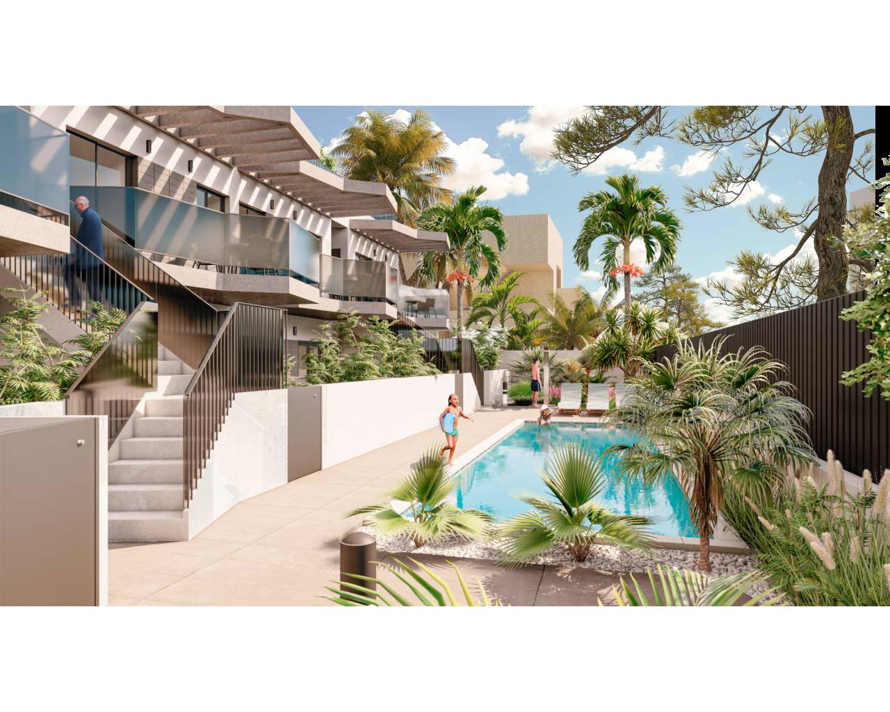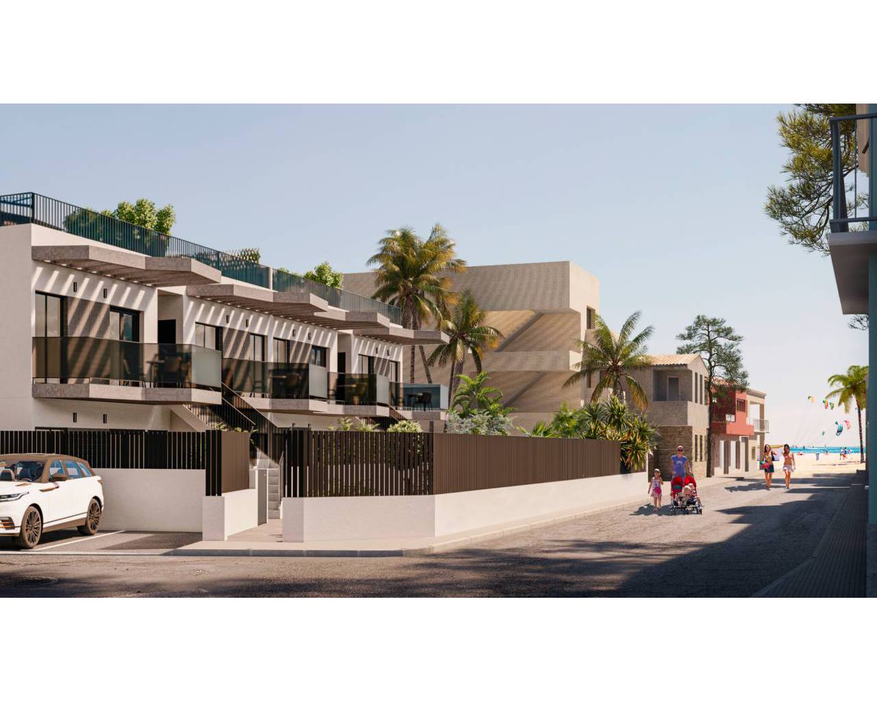 Residencial Elisa à Santiago de la Ribera est situé à 20 mètres de la plage, un développement exclusif de 8 appartements de luxe composé de 4 résidences au rez-de-chaussée avec jardins et 4 penthouses avec solarium privé sur le toit. Ce beau développement a de beaux jardins communaux avec une piscine, un parking privé et chaque appartement comprend une cuisine équipée d'appareils électroménagers et d'un éclairage LED.