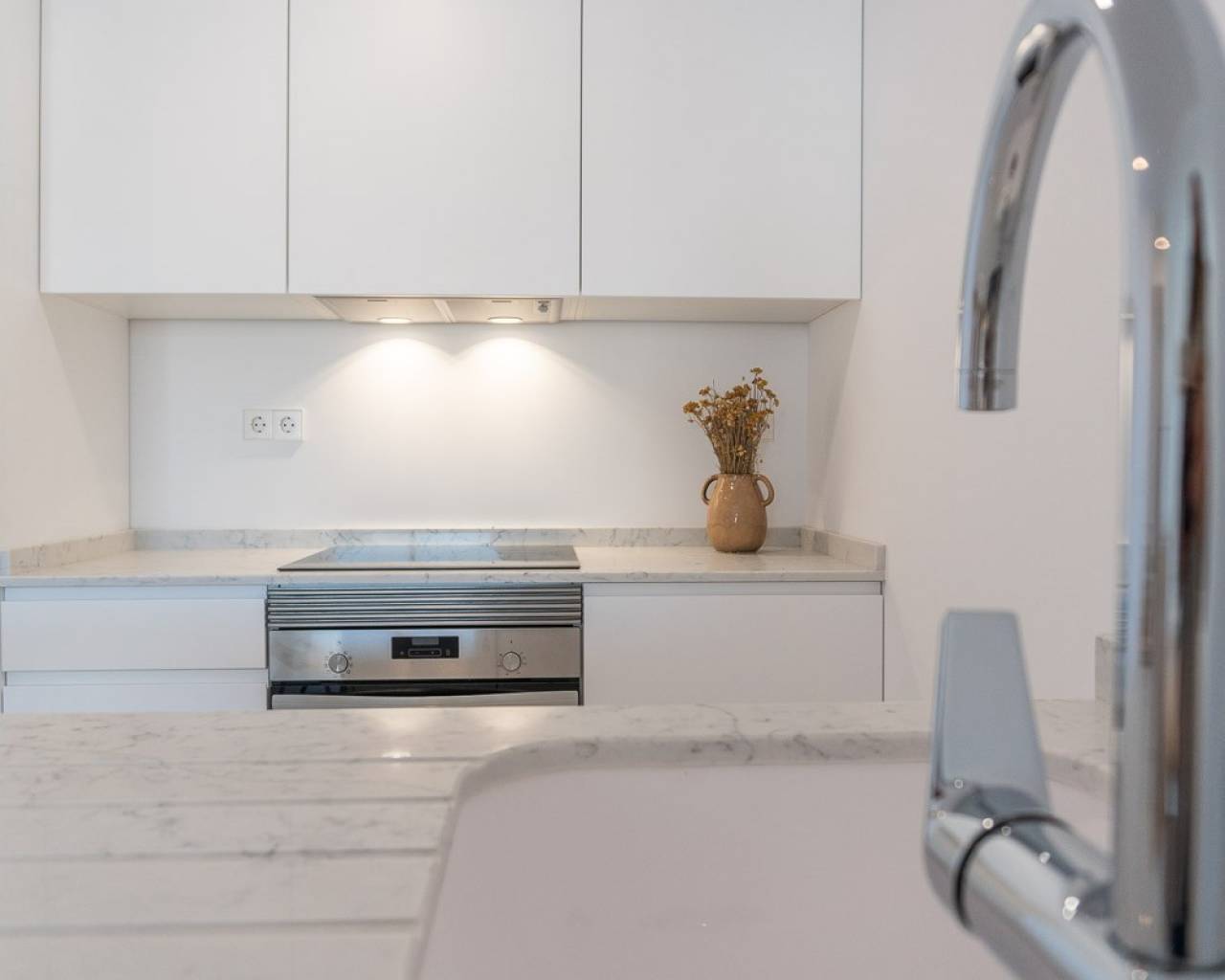 Ce développement exclusif a de beaux jardins communaux, 2 piscines, un parc de jeux pour enfants, des ascenseurs à tous les étages et un parking souterrain sécurisé. Il y a un choix d'appartements de 2, 3 ou 4 chambres au rez-de-chaussée avec jardin, 1er ou 2ème étage avec terrasse et penthouse avec terrasse privée sur le toit.