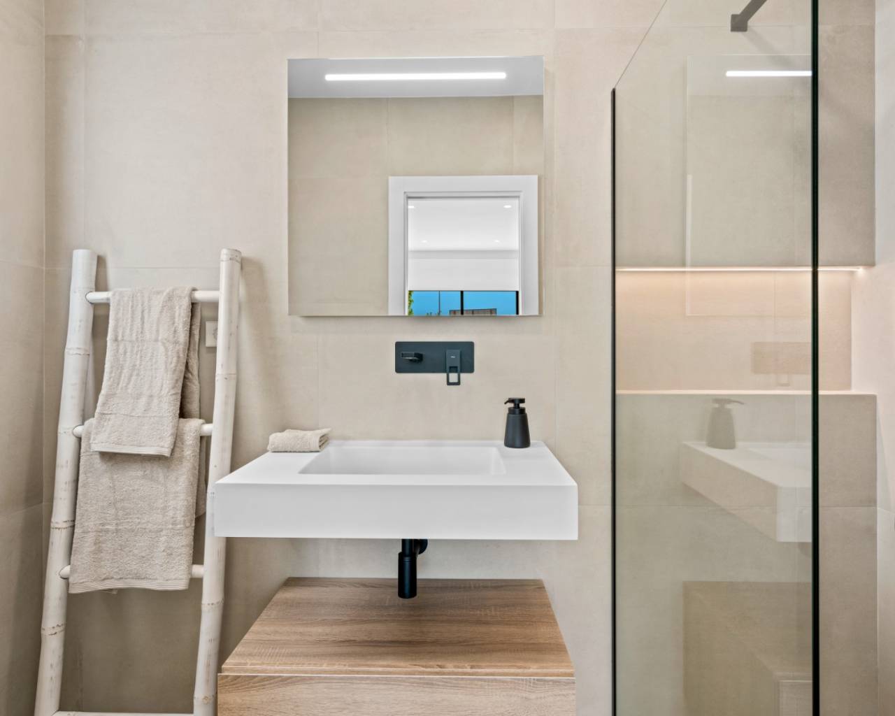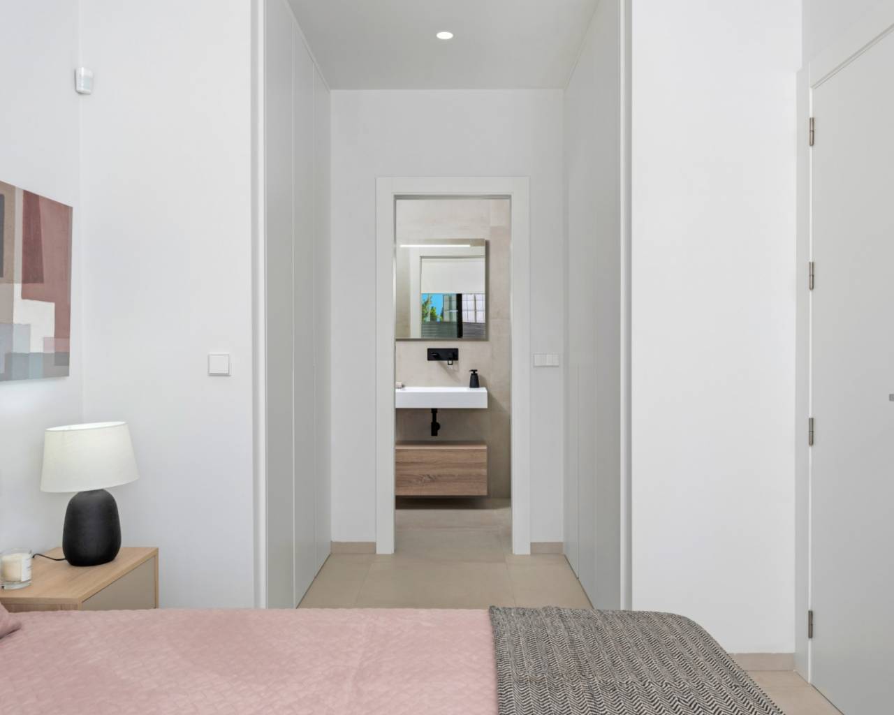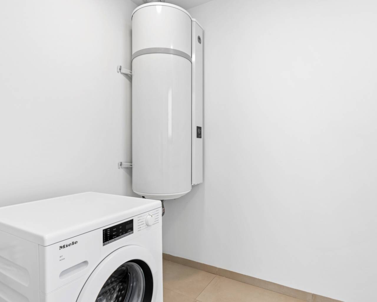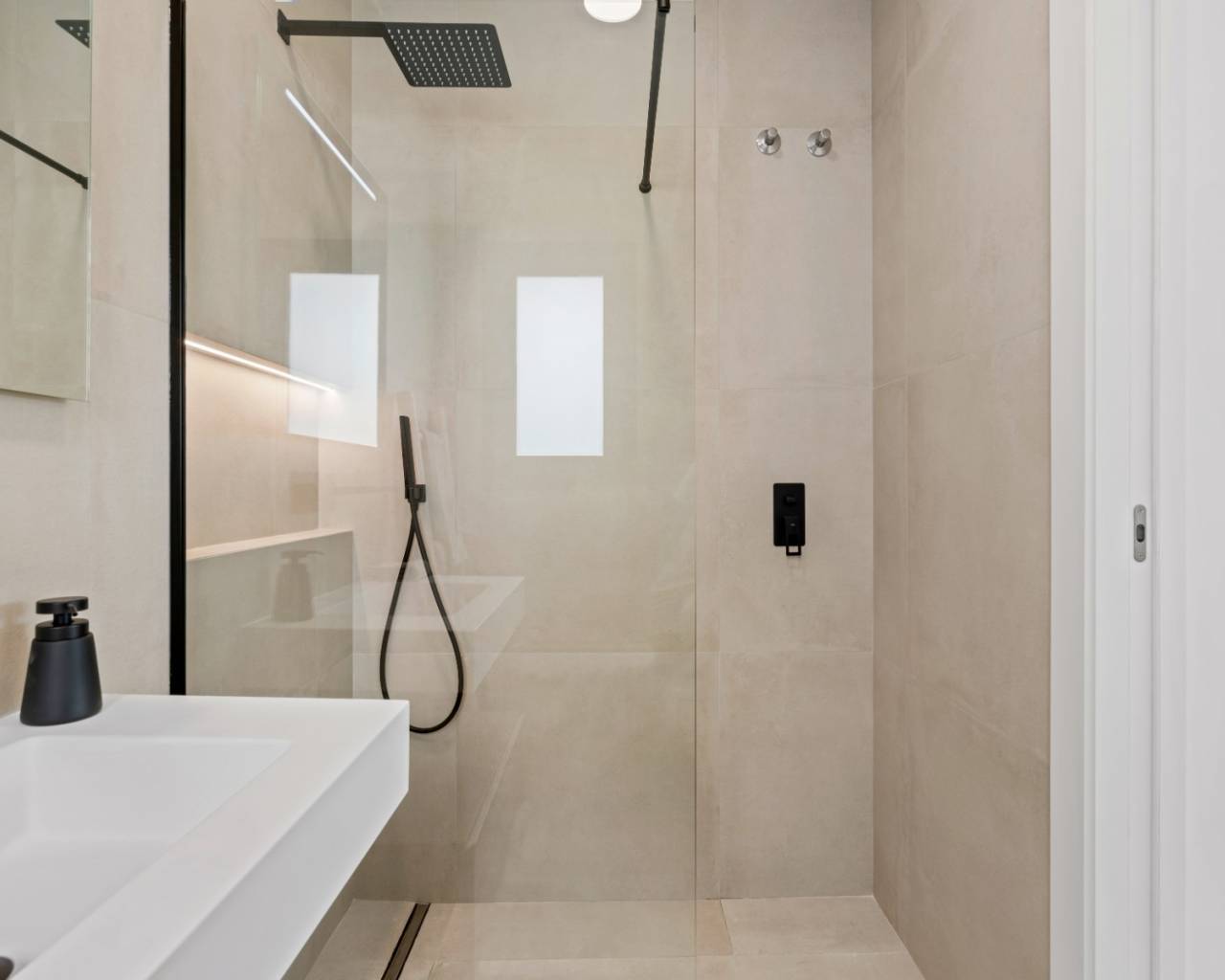 Het beschikt over een hoofdslaapkamer met ingebouwde kasten, een en-suite badkamer met toegang tot de binnenpatio, twee extra tweepersoonsslaapkamers met ingebouwde kasten en een volledig uitgeruste gastenbadkamer. Vanaf de binnenpatio leidt een trap naar een enorm privé solarium van 88 m².