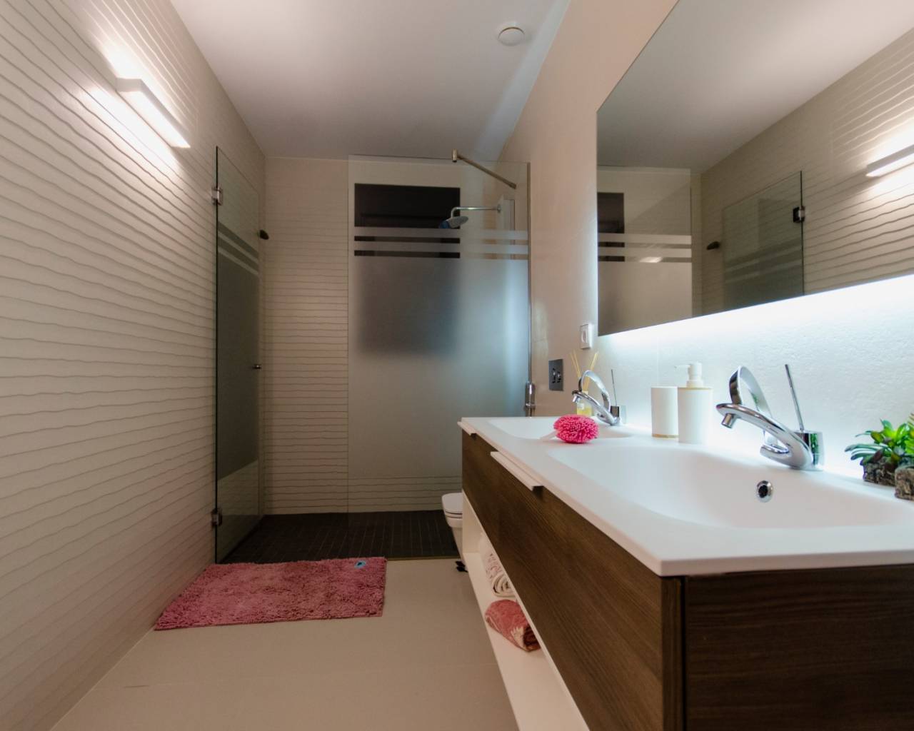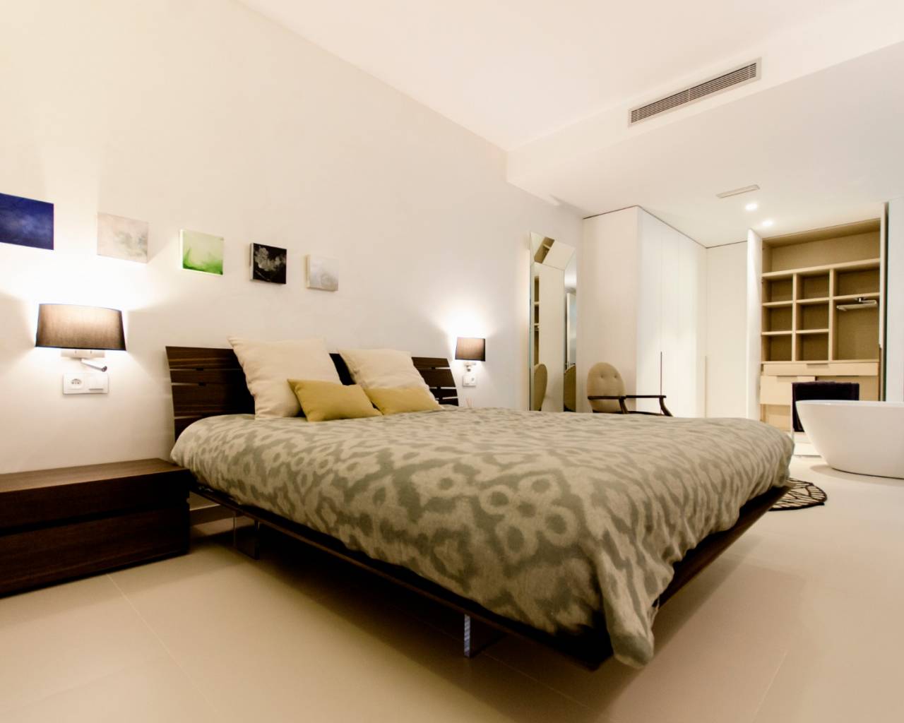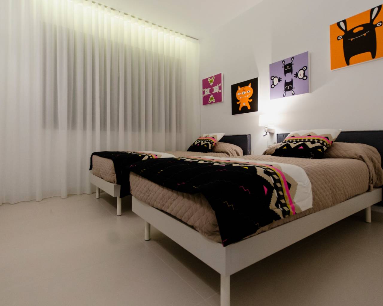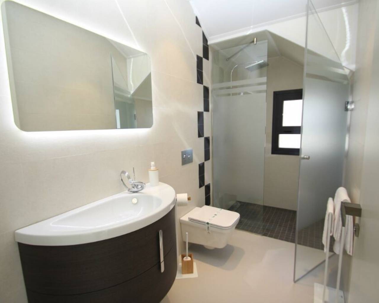 Deze villa in Marta-model heeft een grote open woonkamer met openslaande deuren naar de tuin met privézwembad, eetkamer, moderne keuken met inbouwapparatuur waaronder oven, kookplaat, afzuigkap, koelkast/vriezer, vaatwasser en magnetron, bijkeuken, bijkeuken met wasmachine, grote hoofdslaapkamer met kleedkamer, aparte en-suite badkamer, nog een tweepersoonsslaapkamer en een extra badkamer op dit niveau.