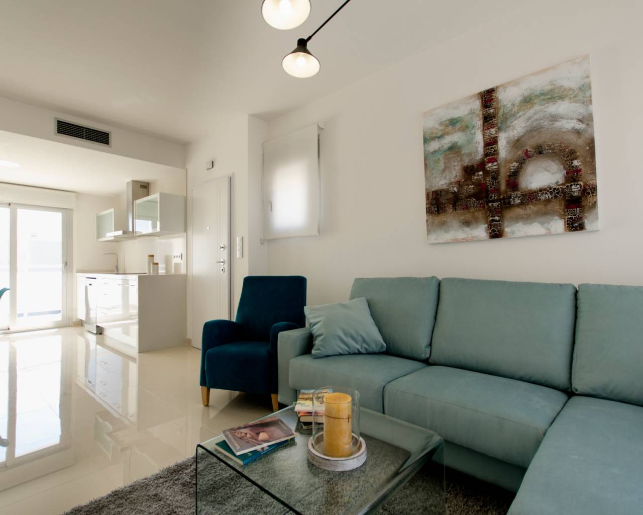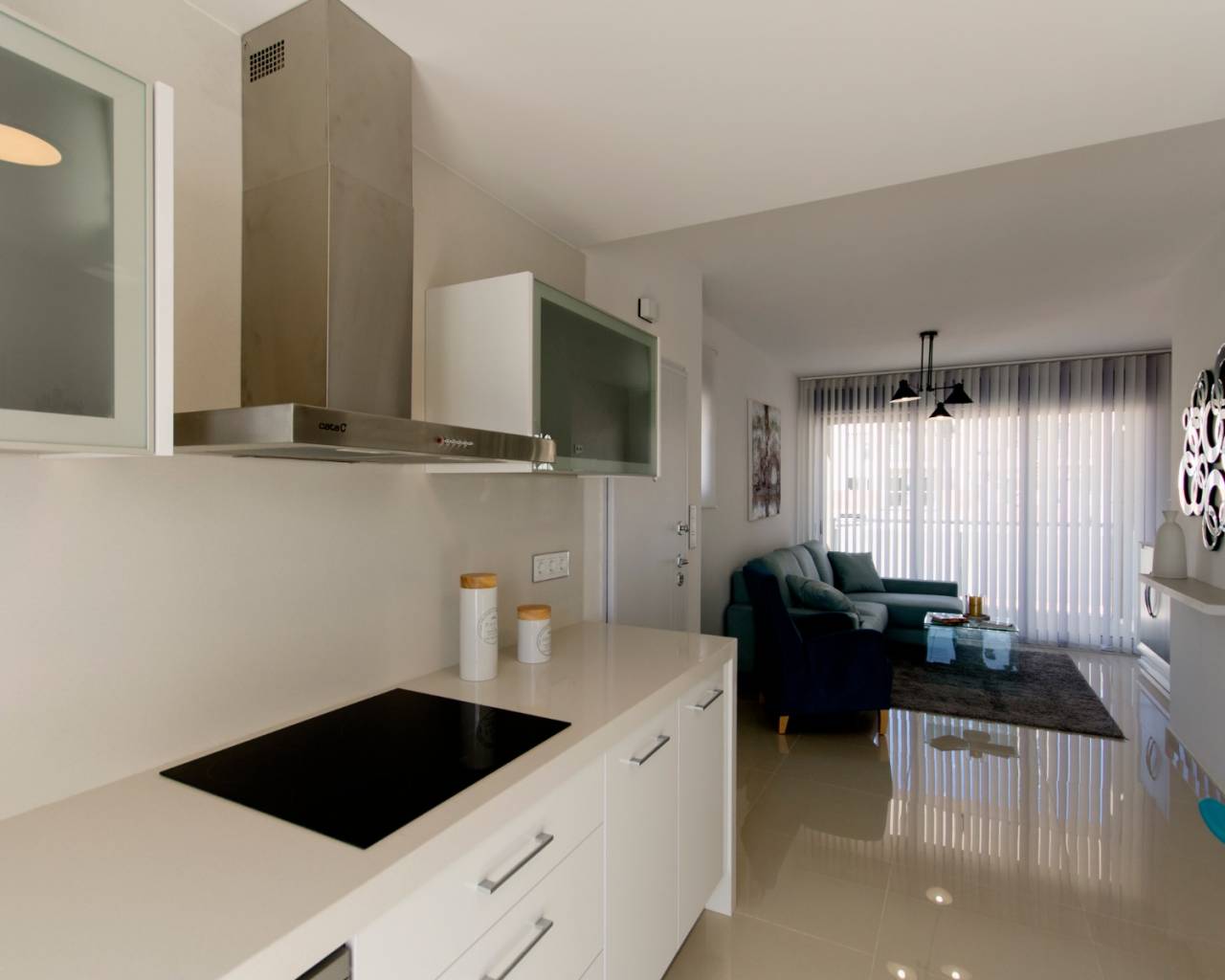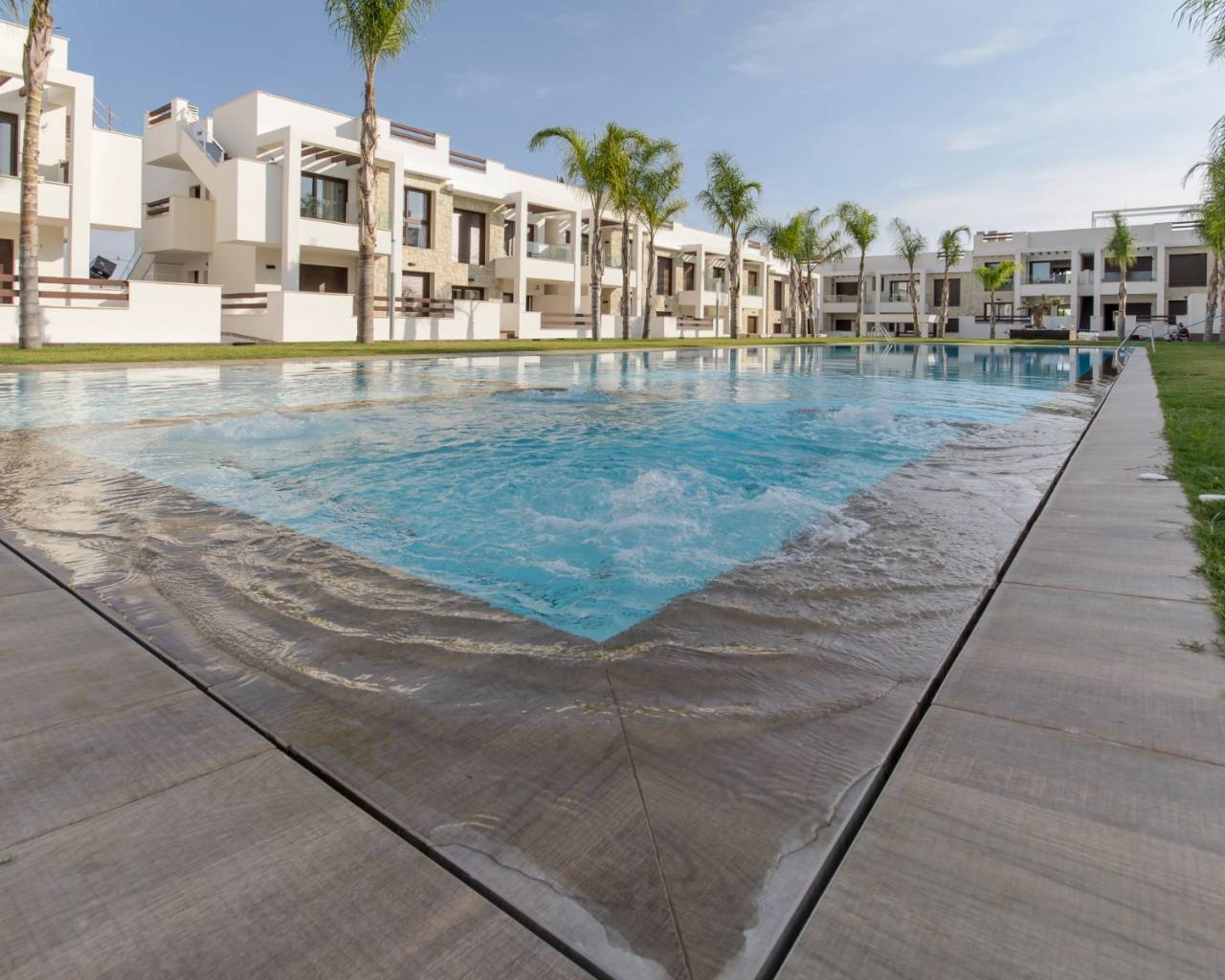 Deze luxe moderne ontwikkeling bestaat uit 2/3 appartementen/bungalows met opties op de begane grond met uitgebreide tuinen of penthouse-modellen met een groot privésolarium op het dak. Er zijn prachtige gemeenschappelijke tuinen met een zwembad en er is ook een beveiligde parkeerplaats met berging. Deze prachtige ontwikkeling is gelegen in Los Balcones, dicht bij voorzieningen en genietend van een prachtig uitzicht op het zoutmeer.