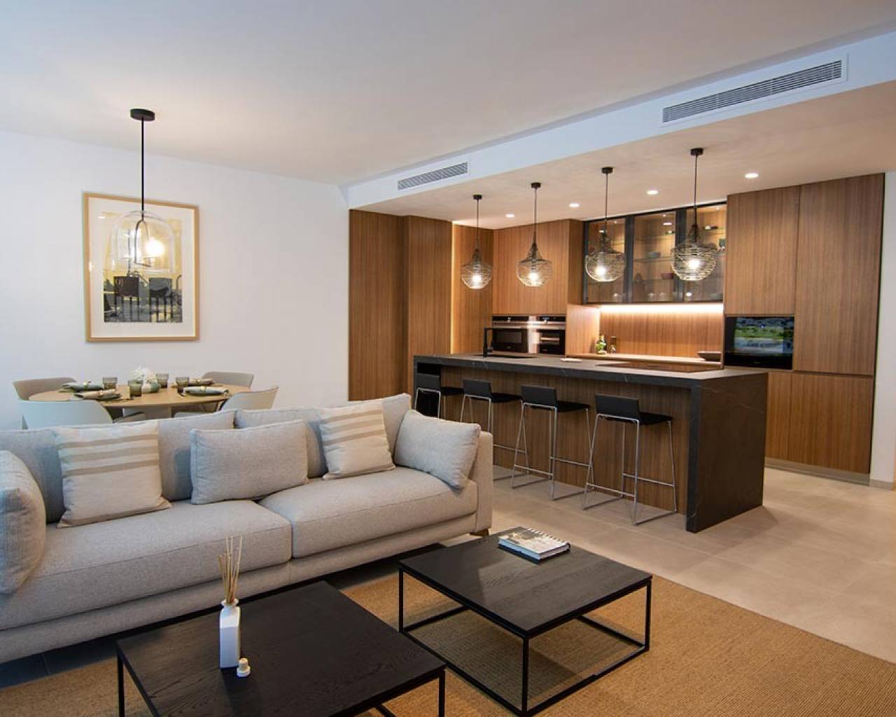 Dit appartement is volgens de hoogste standaard afgewerkt en voorzien van meubilair, warm/koud airconditioning, keukenapparatuur, binnen- en buitenverlichting, prachtige gemeenschappelijke tuinen met palmbomen en zwembad en beveiligde ondergrondse parkeergarage met berging.