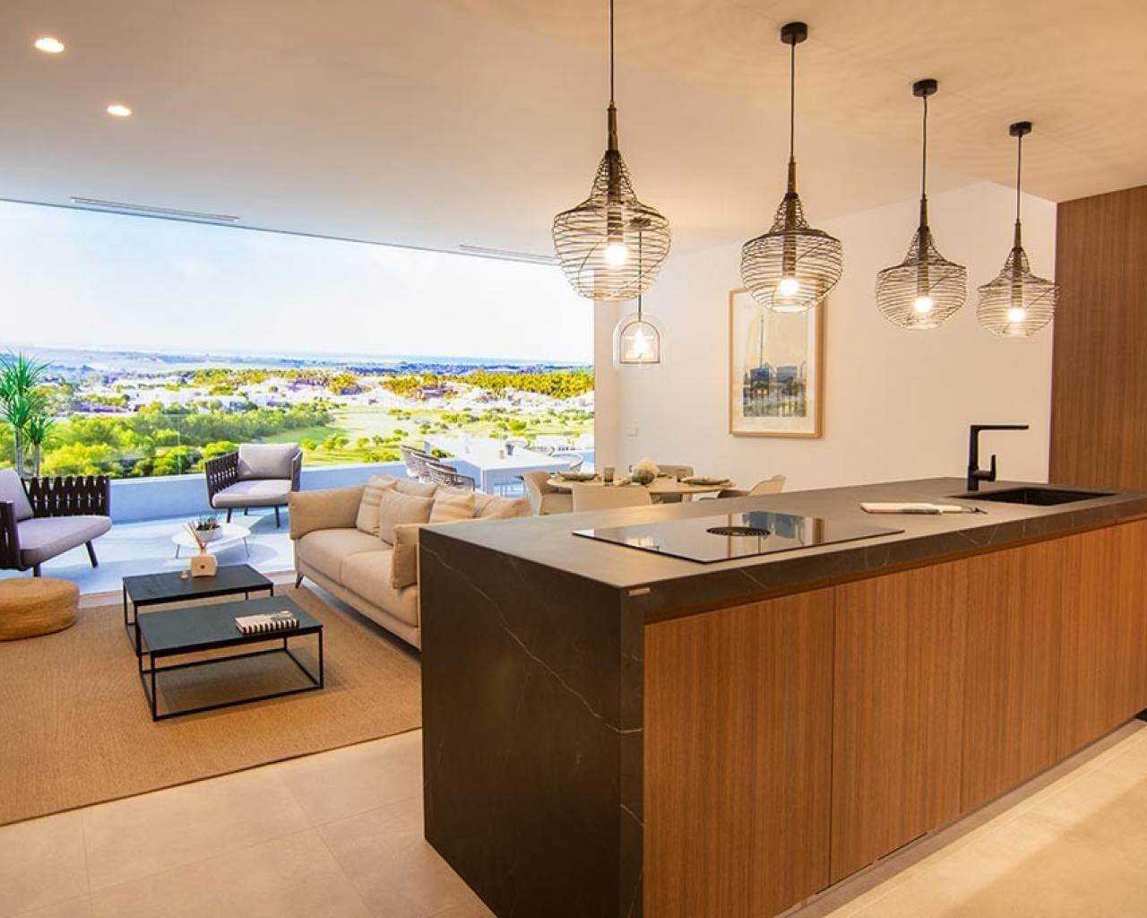 Dit prachtige kant-en-klare luxe appartement op de eerste verdieping bestaat uit een prachtige open woonkamer met openslaande deuren naar het ruime terras met panoramisch uitzicht, moderne keuken met inbouwapparatuur, waaronder oven, kookplaat, afzuigkap, koelkast/vriezer, wasmachine, vaatwasser en magnetron, eetkamer, hoofdslaapkamer met inbouwkasten en en-suite badkamer, nog twee tweepersoonsslaapkamers ook met inbouwkasten en een volledig ingerichte gastenbadkamer.
