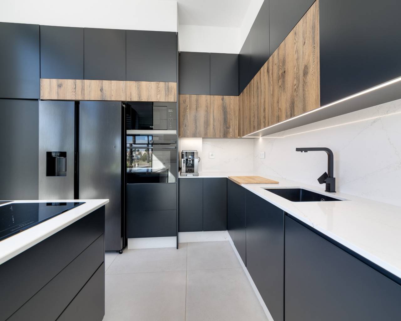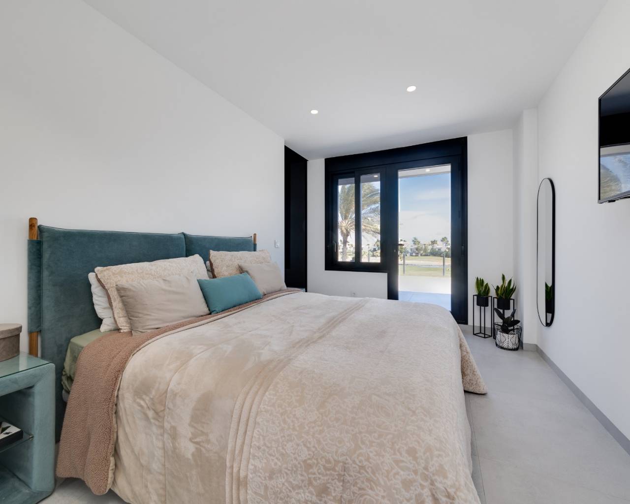 Deze moderne villa bestaat uit een woon-/eetkamer met openslaande deuren over de volledige breedte naar de tuin met privézwembad, een open keuken met inbouwapparatuur, waaronder een oven, kookplaat, afzuigkap, ingebouwde koel-/vriescombinatie en vaatwasser, wasmachine en magnetron, een bijkeuken/wasruimte, een gastentoilet, een tweepersoonsslaapkamer met inbouwkasten en een complete badkamer op deze verdieping.