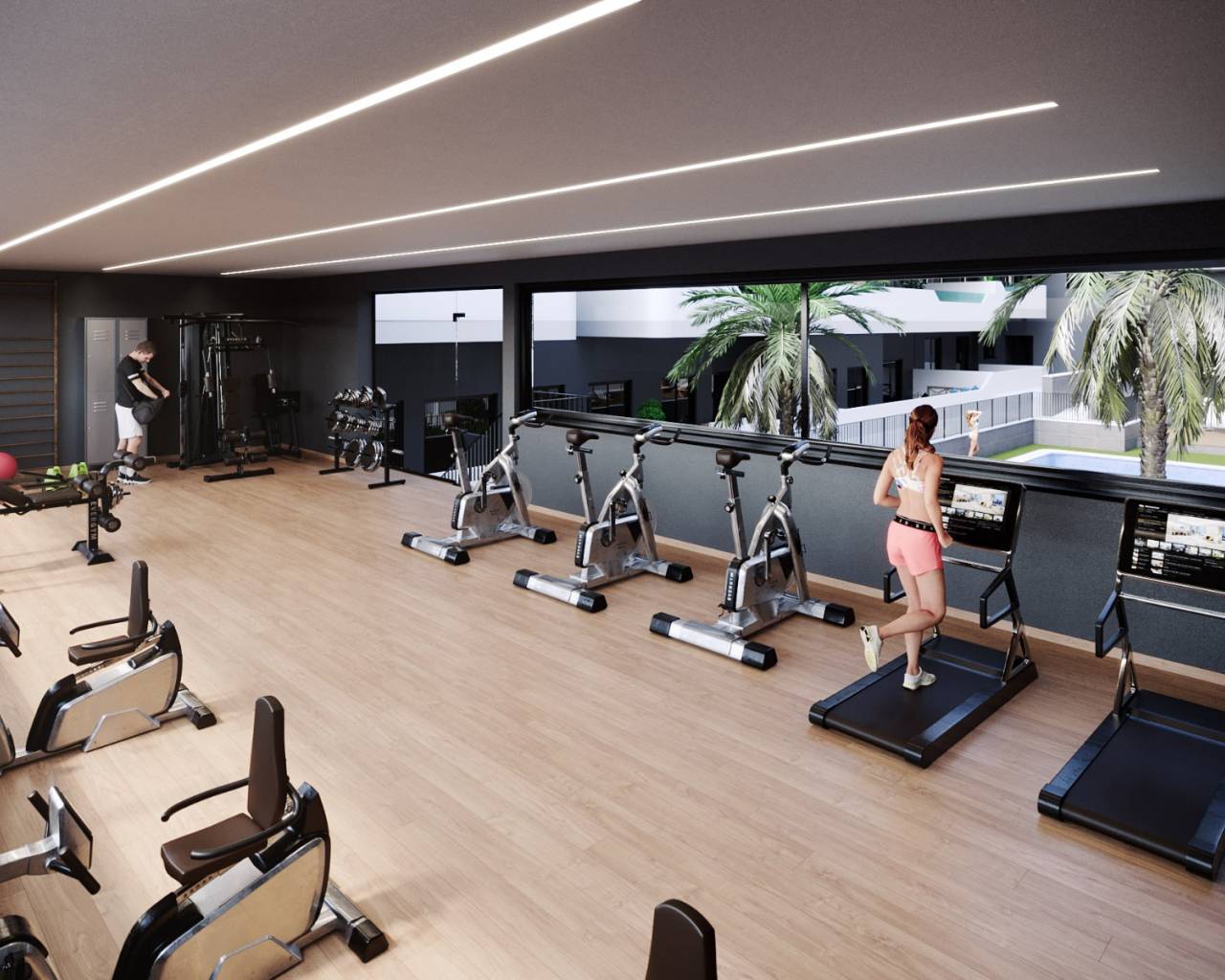 Er zijn appartementen met 1, 2 of 3 slaapkamers, op de begane grond met een tuin, op de middelste verdieping met een terras en op de penthouseverdieping met een privésolarium op het dak.
