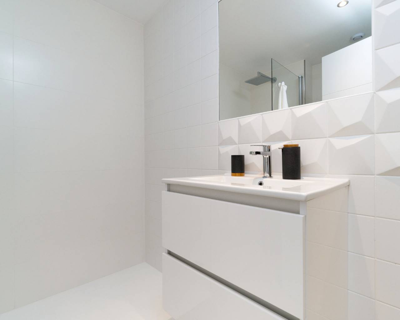 Dit appartement is afgewerkt en instapklaar en omvat warm/koud airconditioning, moderne keuken met oven, keramische kookplaat en afzuigkap, volledige badkamers met spiegels en doucheschermen en beveiligde ondergrondse parking met berging.