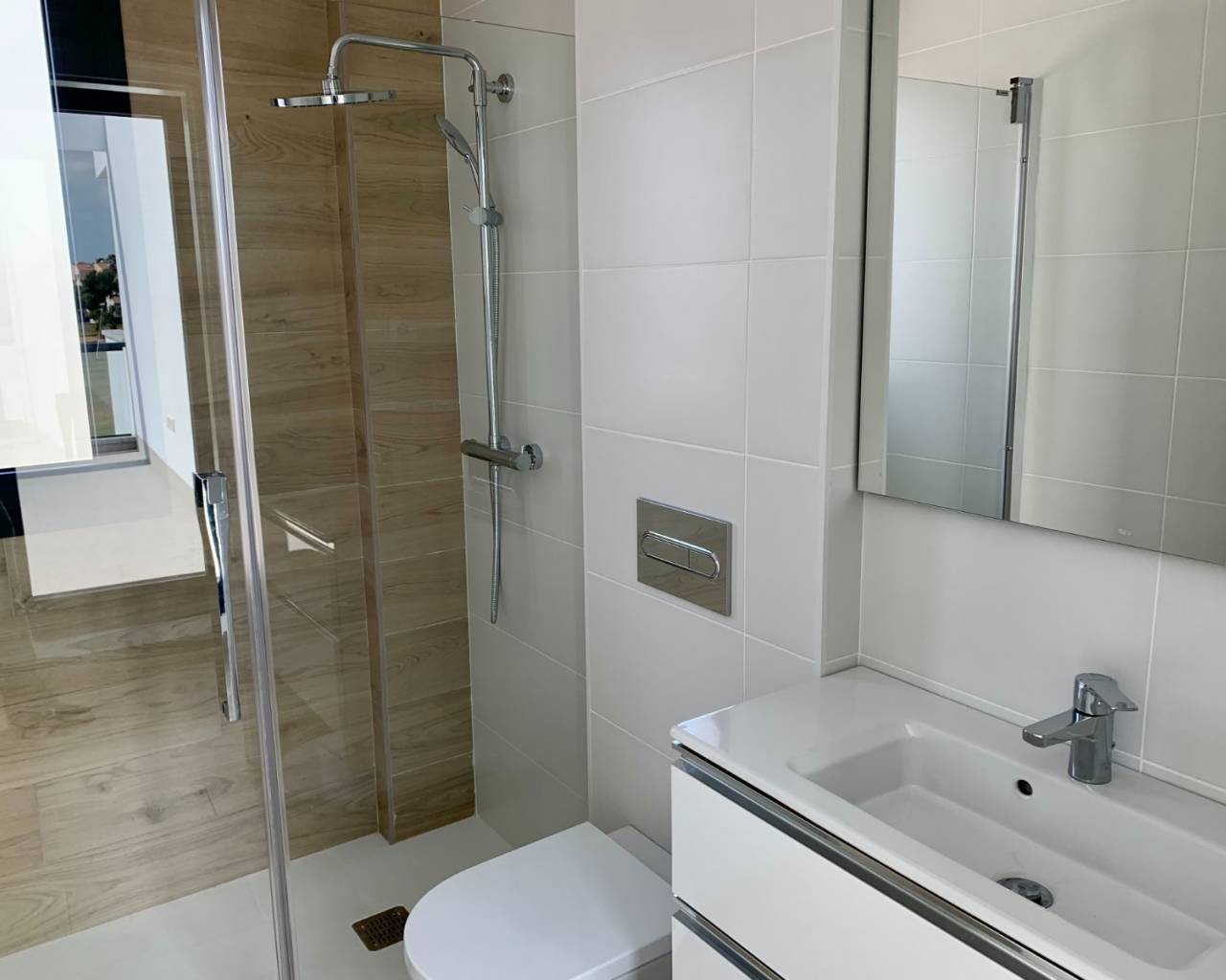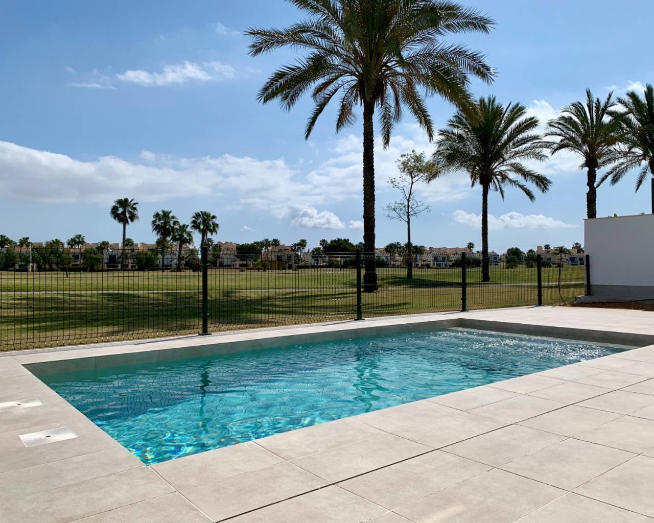 This brand new luxurious 4 bedroom, 3 bathroom detached villa is situated on the outskirts of Los Alcazares on the Roda golf resort which has a stunning 18 hole golf course, 24 hour gated security and a clubhouse with restaurant and sun terrace. This is a unique design and built to the highest standard and located a few minutes from the town centre which has a host of amenities and the beach which has a beautiful long promenade where you can enjoy walks by the sea.