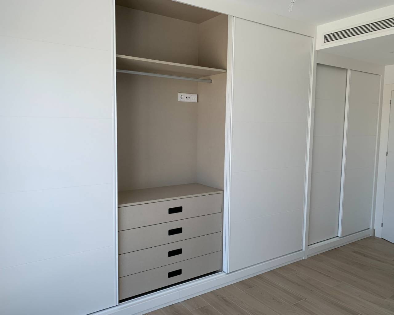 On the first floor there is a master bedroom with fitted wardrobes, en-suite bathroom and a private sun terrace, a further double bedroom with fitted wardrobes and en-suite and there is a large shared upper sun terrace on this level which can be accessed from bedroom 3.