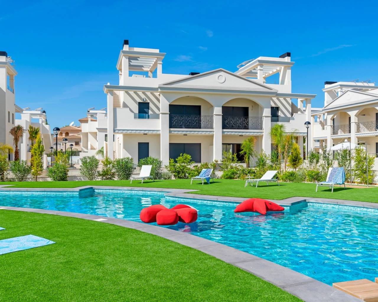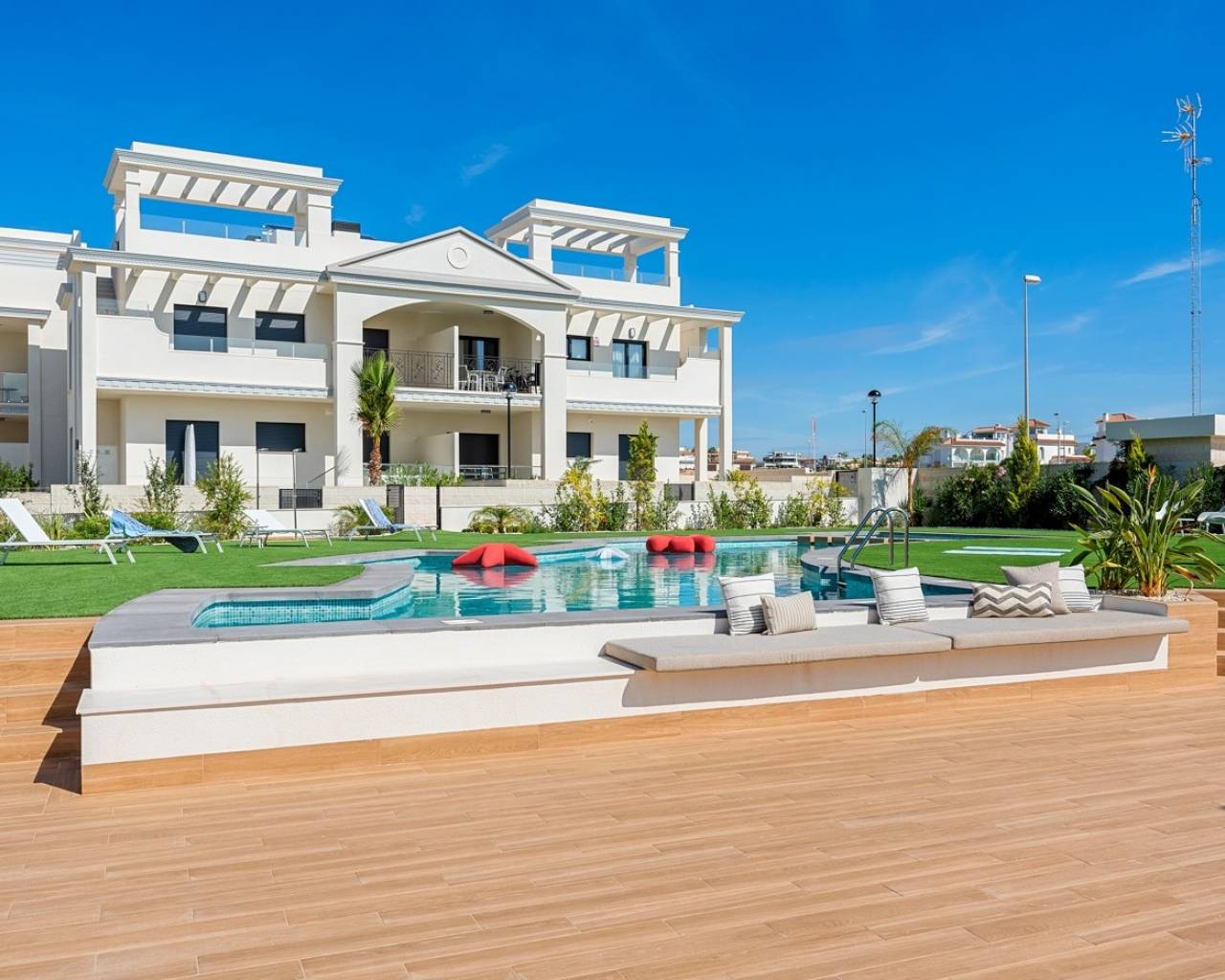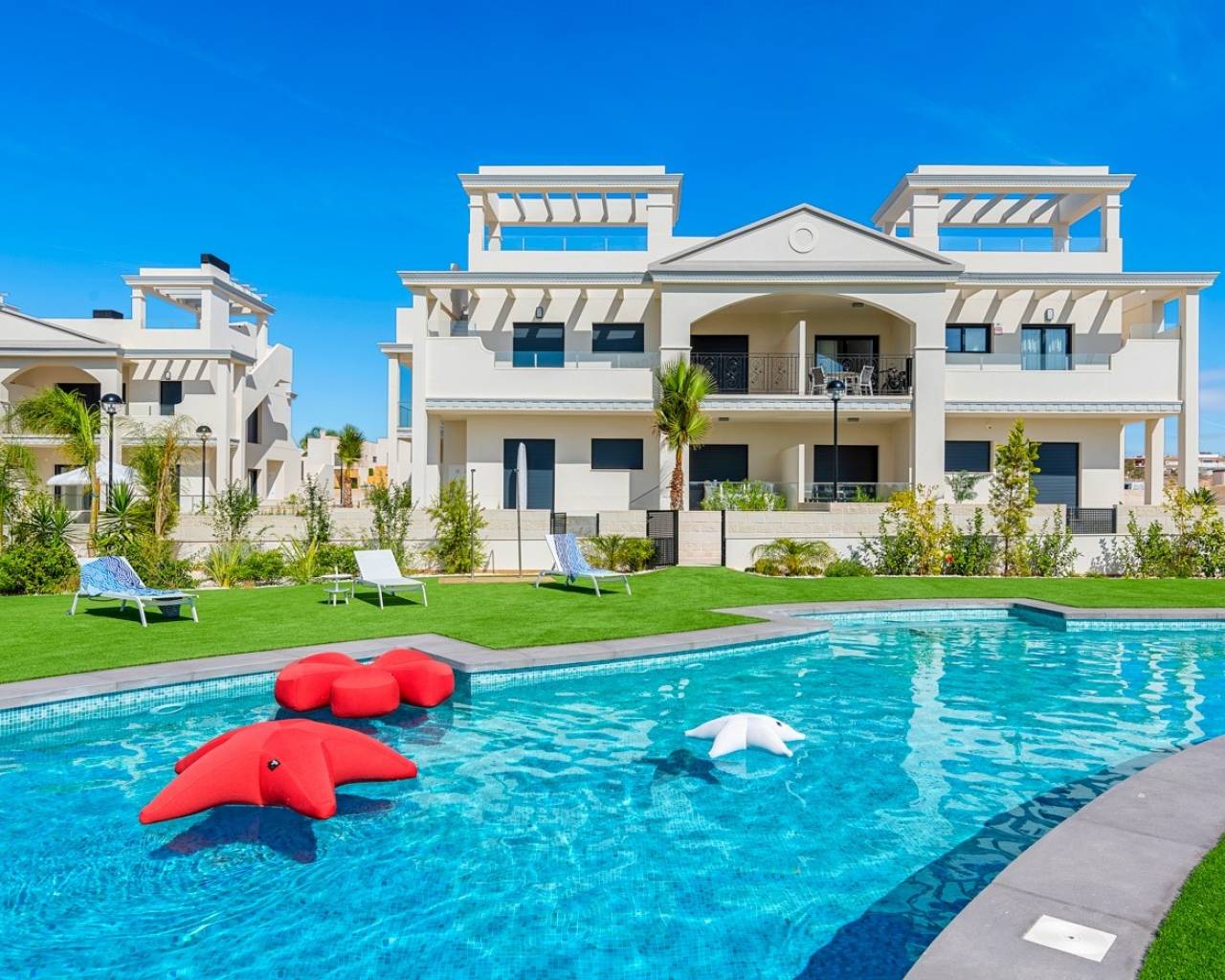 Residencial Adhara is a luxurious development of modern apartments with lovely communal gardens and large swimming pool situated in Dona Pepa, close to Quesada. There is a host of bars, shops, supermarkets and restaurants on the doorstep. There are ground floor options with private gardens, penthouse apartments with rooftop solarium and each apartments comes with fully fitted kitchens with appliances and private parking space.