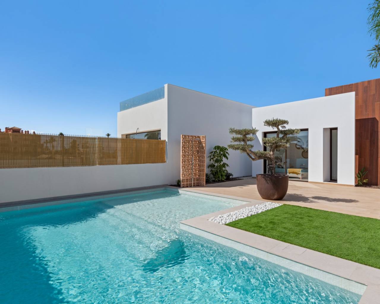 This luxury modern development consists of 9 one level luxury villas, all with private swimming pool, complete kitchen with fitted appliances and the option to add a rooftop solarium.