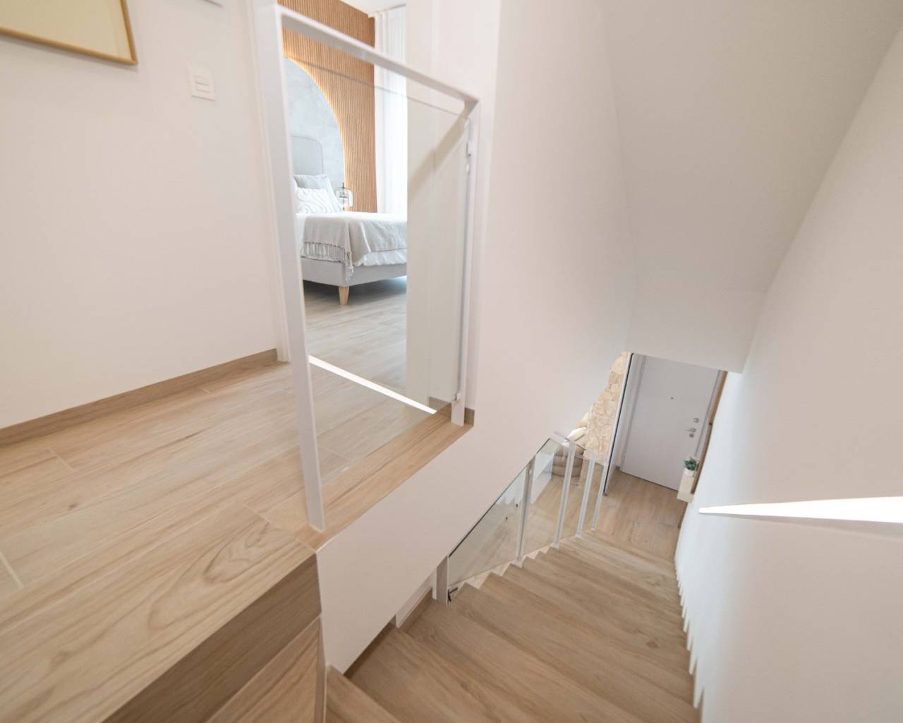 On the first floor you will find a double bedroom with fitted wardrobes and access to the upper sun terrace, a further double bedroom with fitted wardrobes and a further fully fitted bathroom. The staircase leads up to the private rooftop solarium where you can enjoy open views and all day sun.