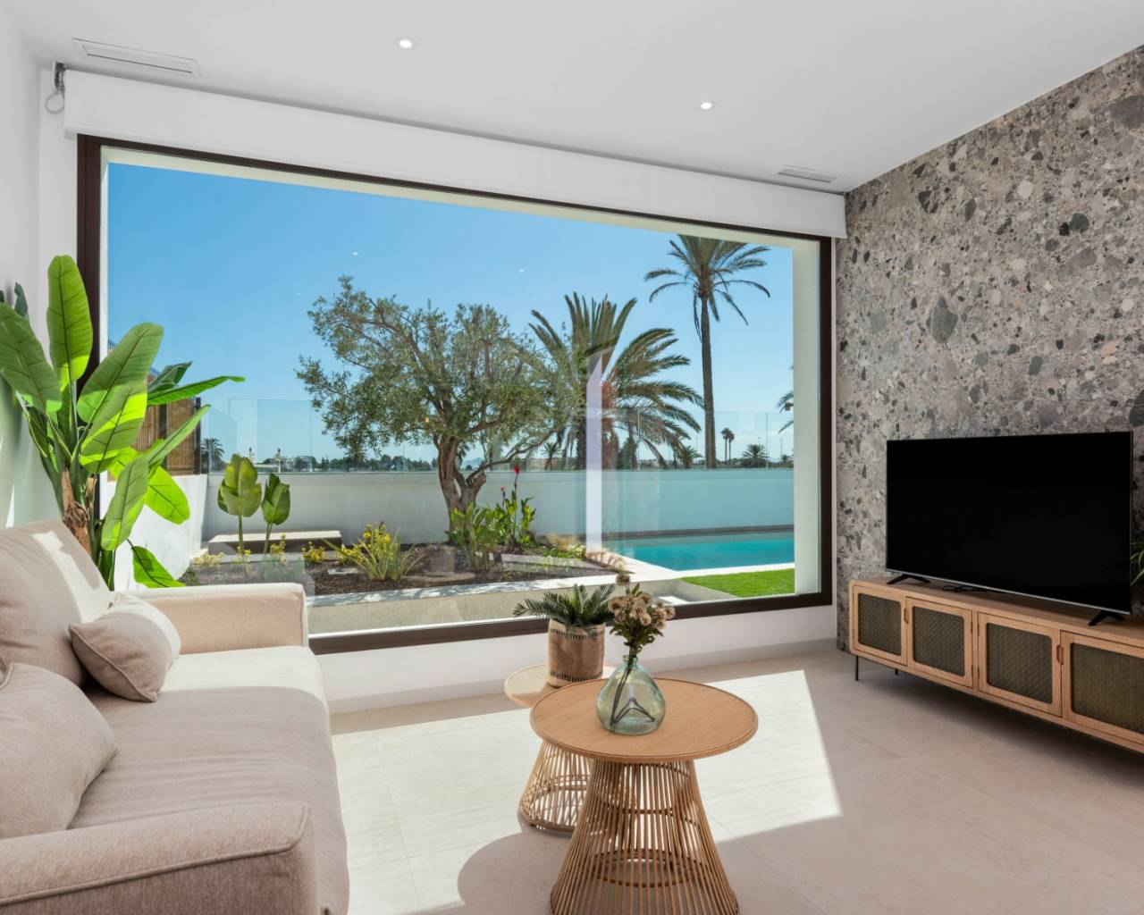 This modern luxury villa comprises of an open plan lounge with patio doors which lead out into the garden with swimming pool and frontline golf views, dining area, a modern kitchen with fitted appliances including oven, hob, extractor, fridge/freezer, dishwasher, washing machine and microwave, a master bedroom with fitted wardrobes, en-suite and access to the terrace, two further double bedrooms with fitted wardrobes and a fully fitted guest bathroom. There is the option to add a private rooftop solarium where you can enjoy open golf views and all day sun.