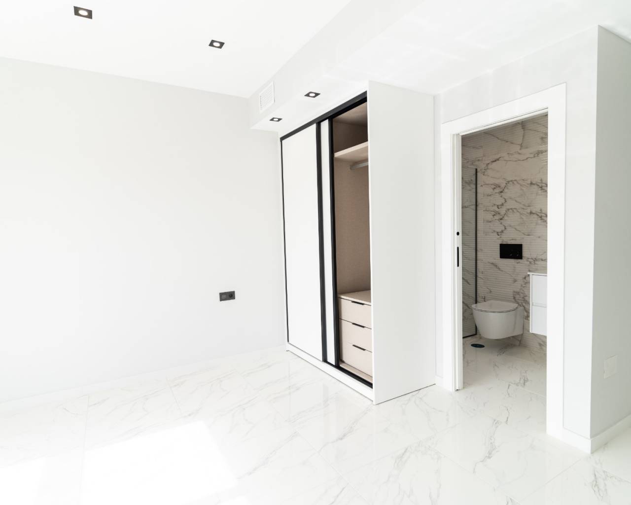 Each detached villa is finished to the highest standard and includes a private pool, modern kitchen with fitted appliances, LED lighting, private solarium, and pre installation of vented air conditioning.