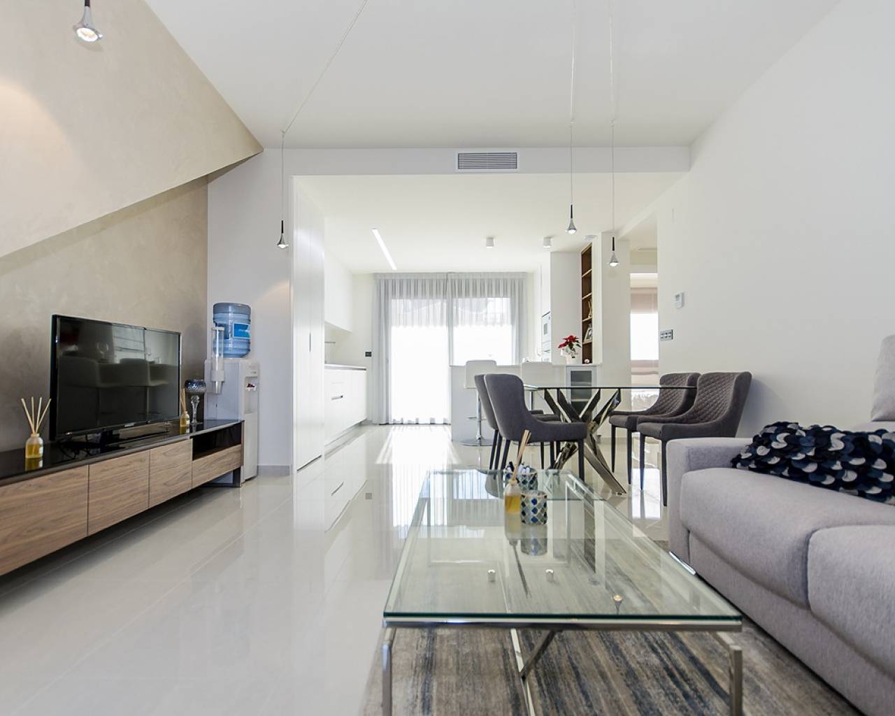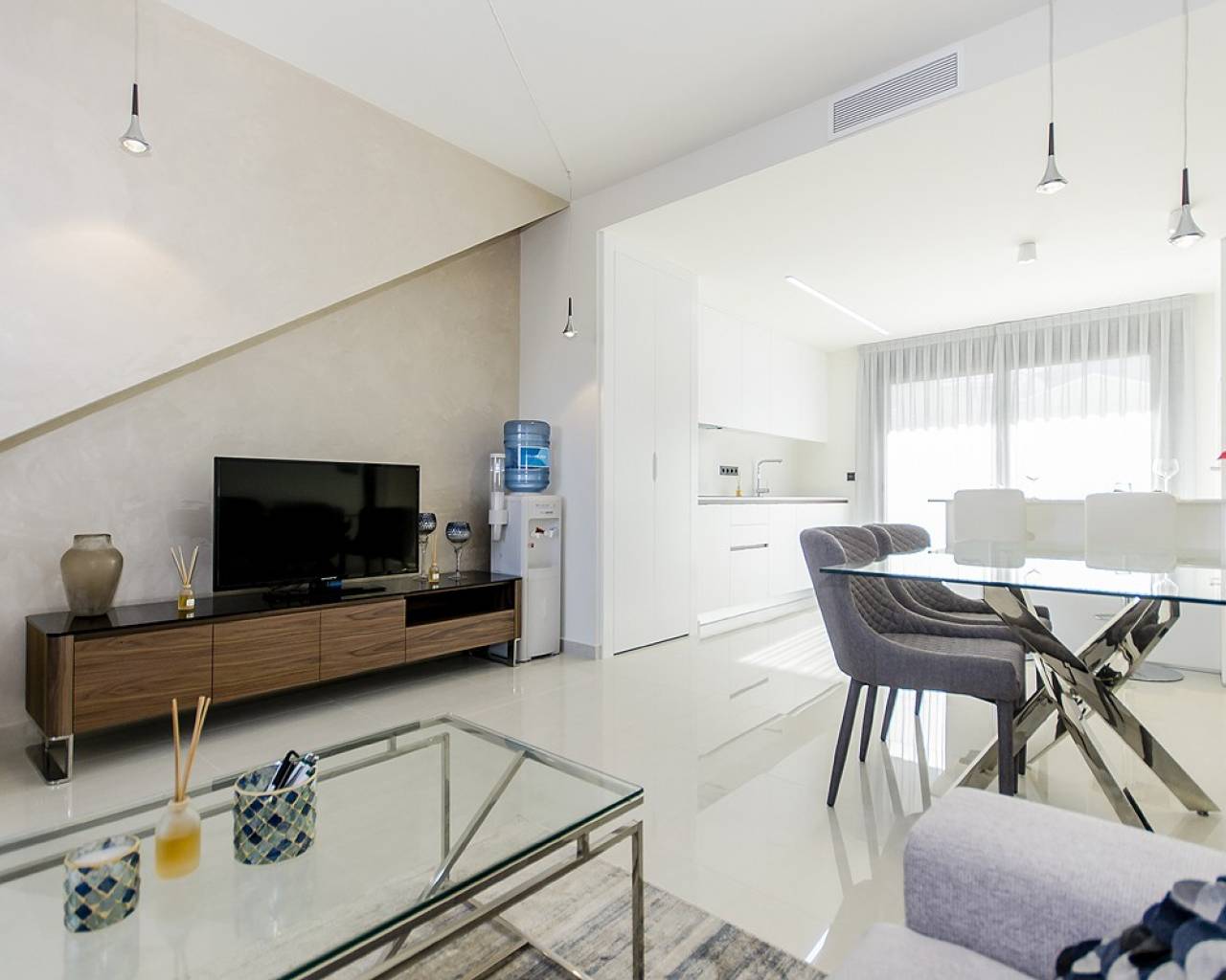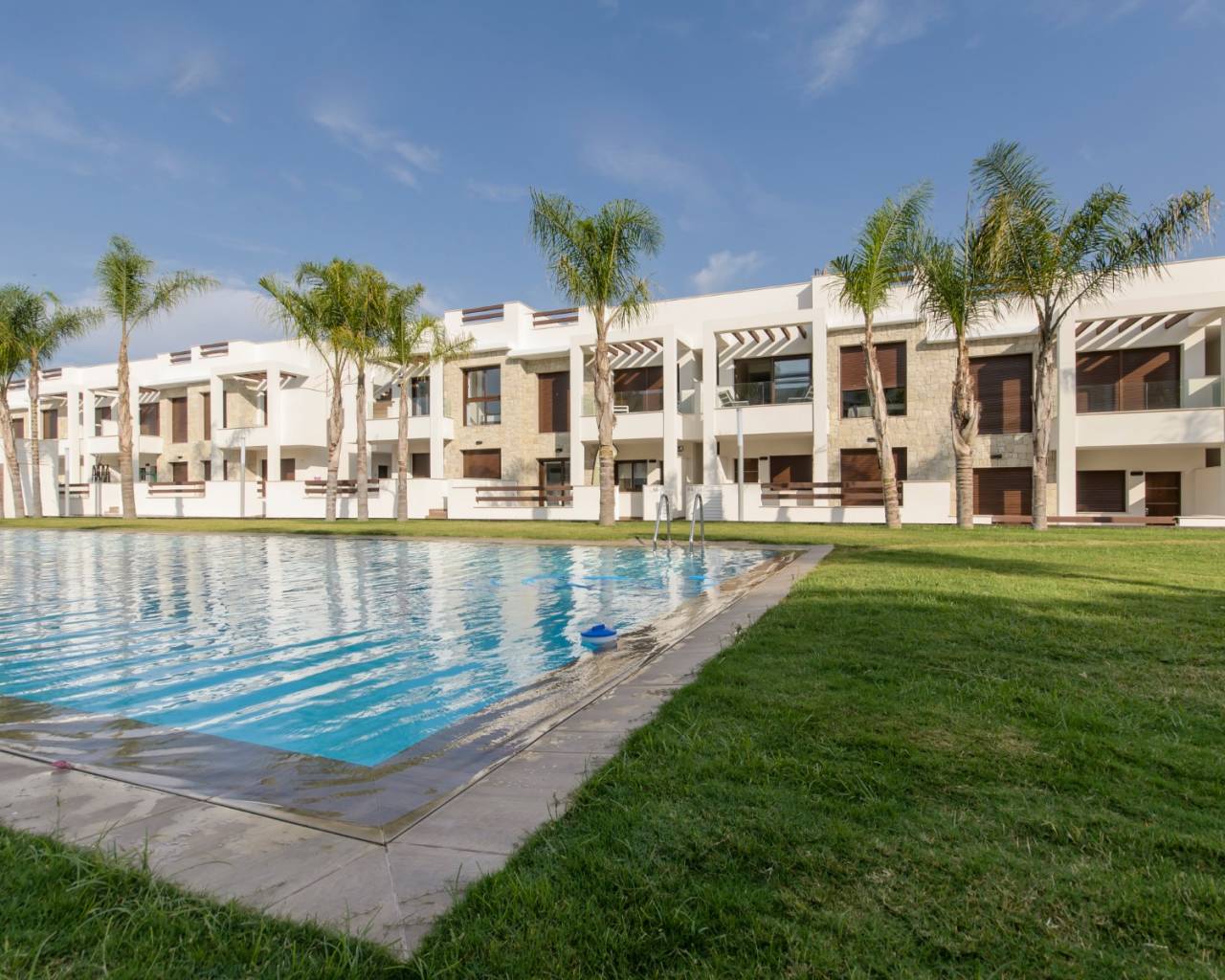 This luxurious modern development consists of 2/3 apartment/bungalows with options of ground floor which have a large gardens or penthouse models with large private rooftop solarium. There are lovely communal gardens with a swimming pool and secure parking with storage is also included. This stunning development is located in Los Balcones close to amenities and enjoys beautiful salt lake views.