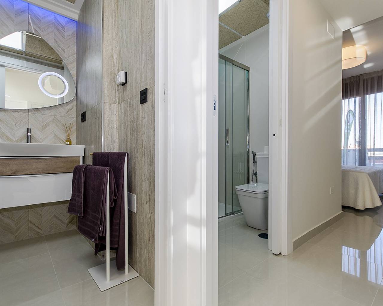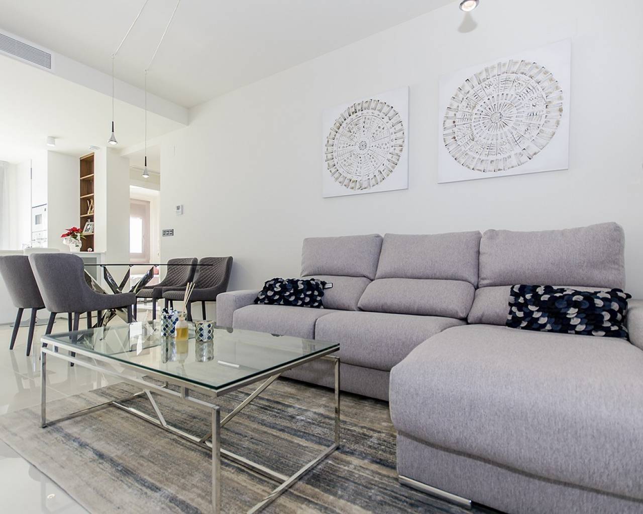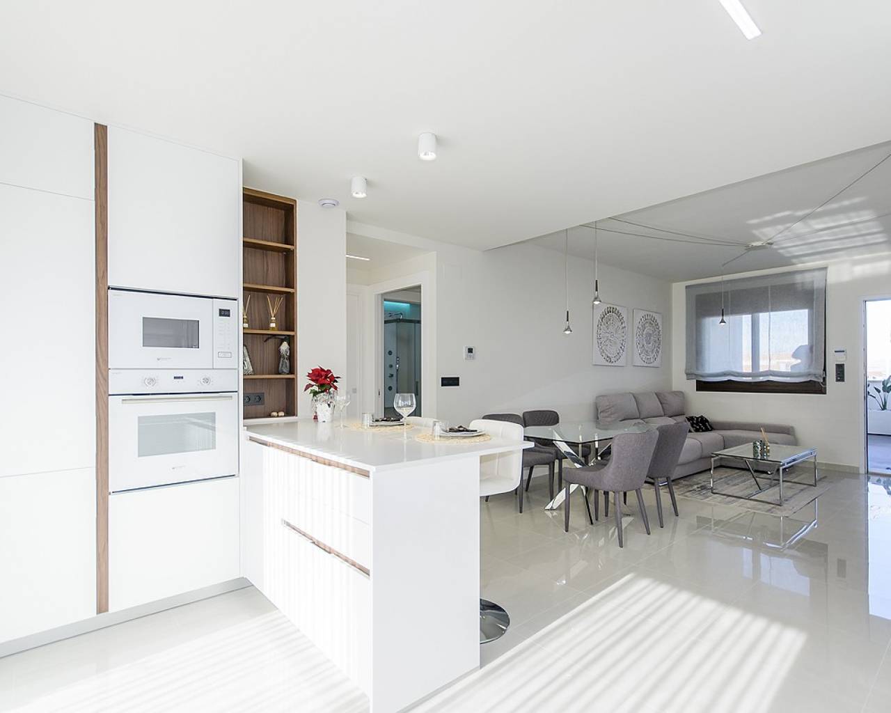 This luxurious modern development consists of 2/3 apartment/bungalows with options of ground floor which have a large gardens or penthouse models with large private rooftop solarium. There are lovely communal gardens with a swimming pool and secure parking with storage is also included. This stunning development is located in Los Balcones close to amenities and enjoys beautiful salt lake views.