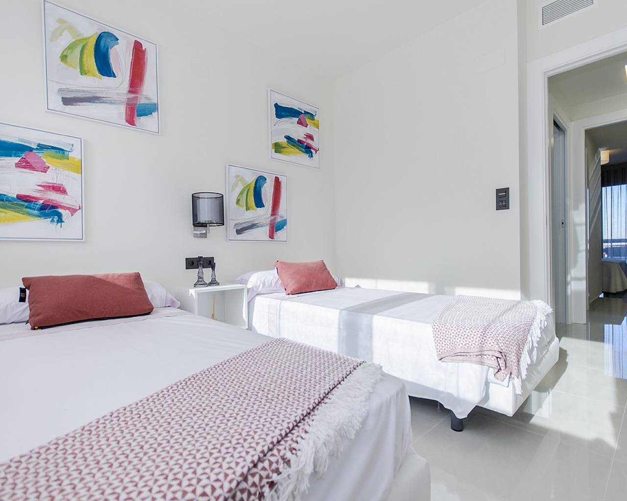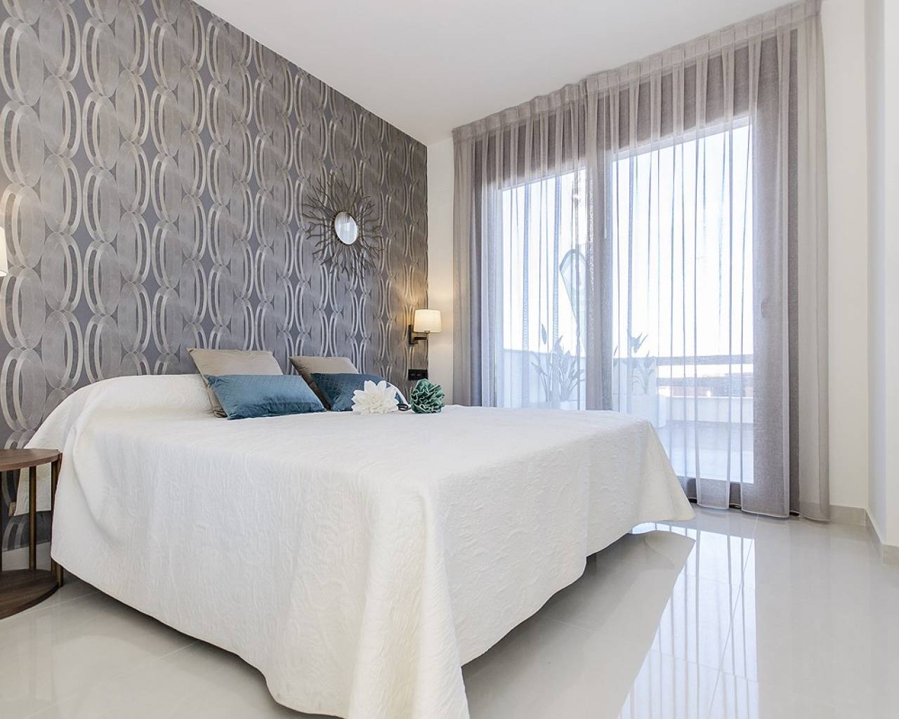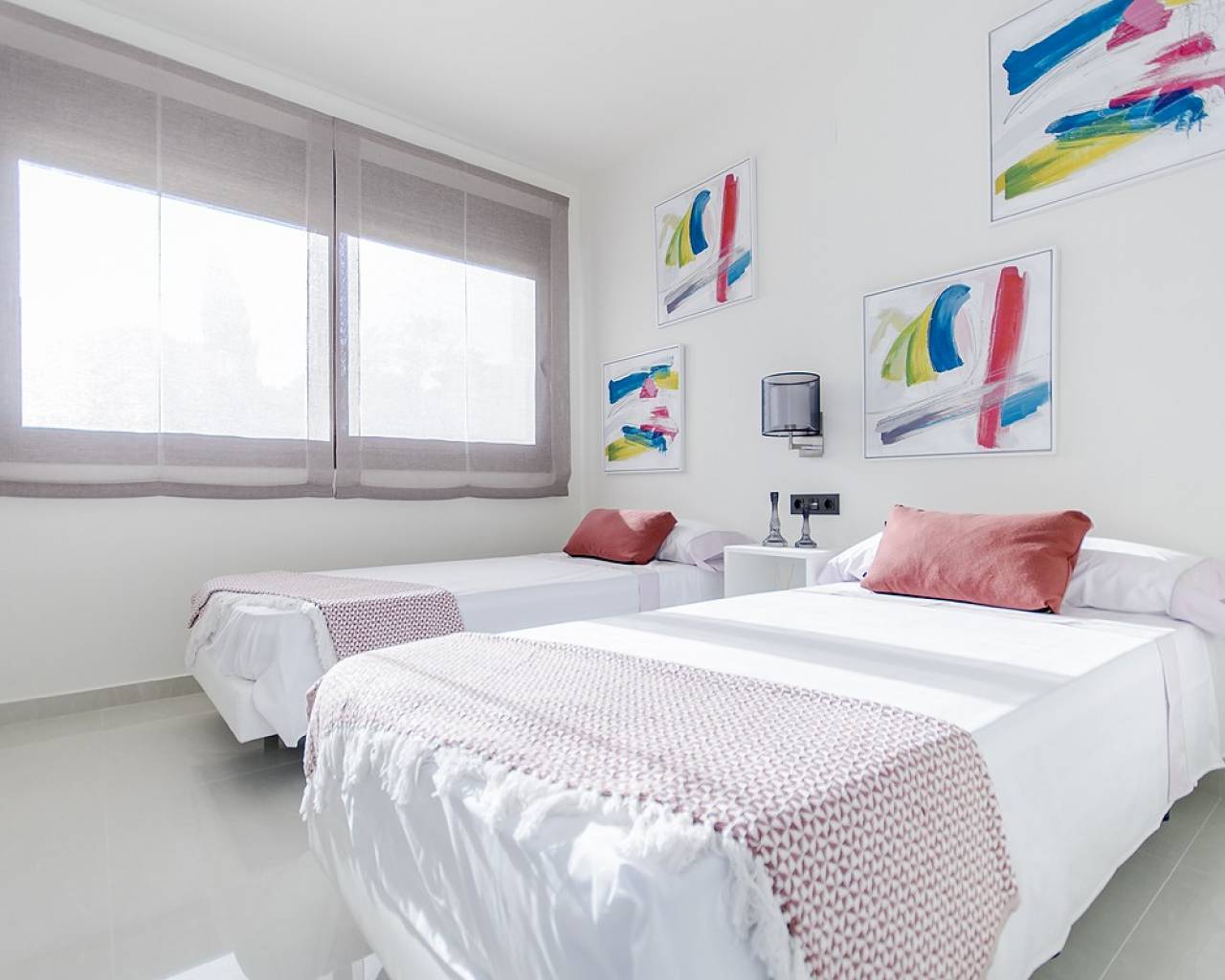 This luxurious modern development consists of 2/3 apartment/bungalows with options of ground floor which have a large gardens or penthouse models with large private rooftop solarium. There are lovely communal gardens with a swimming pool and secure parking with storage is also included. This stunning development is located in Los Balcones close to amenities and enjoys beautiful salt lake views.