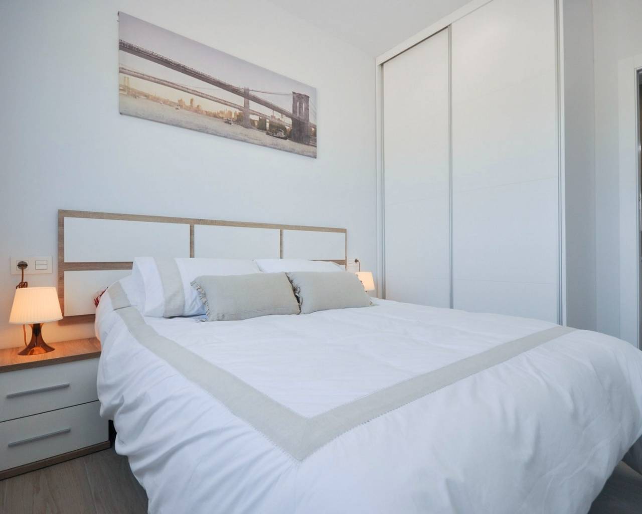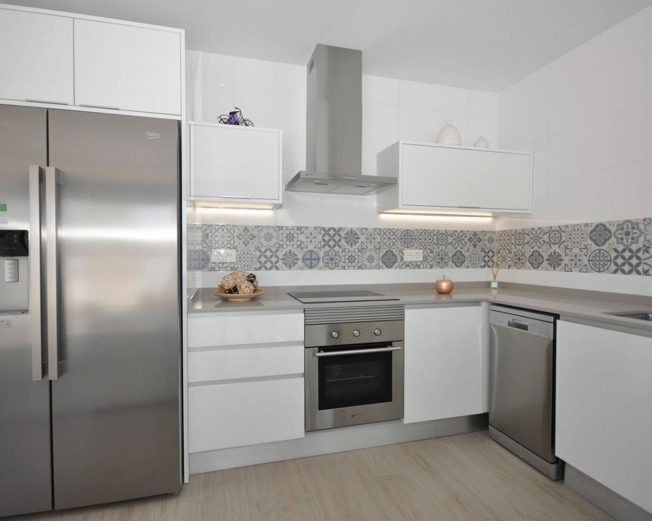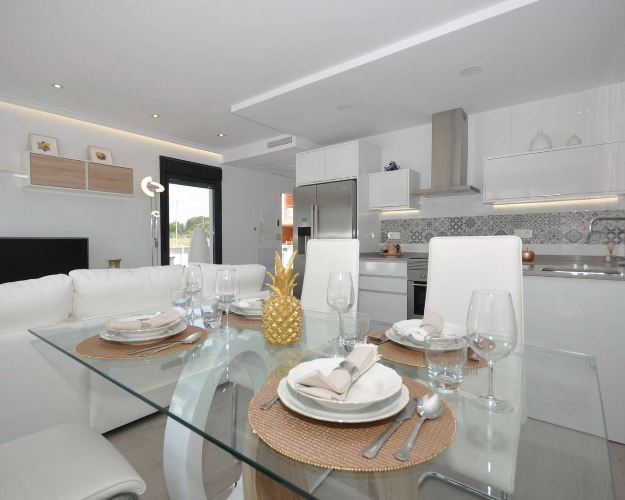 This luxurious villa has a lovely open plan lounge with patio doors which lead out into the private garden where you have the option to add a private pool, a modern kitchen with fitted appliances including oven, hob, extractor, fridge/freezer, washing machine, dishwasher and microwave, two double bedrooms with fitted wardrobes and a guest bathroom.