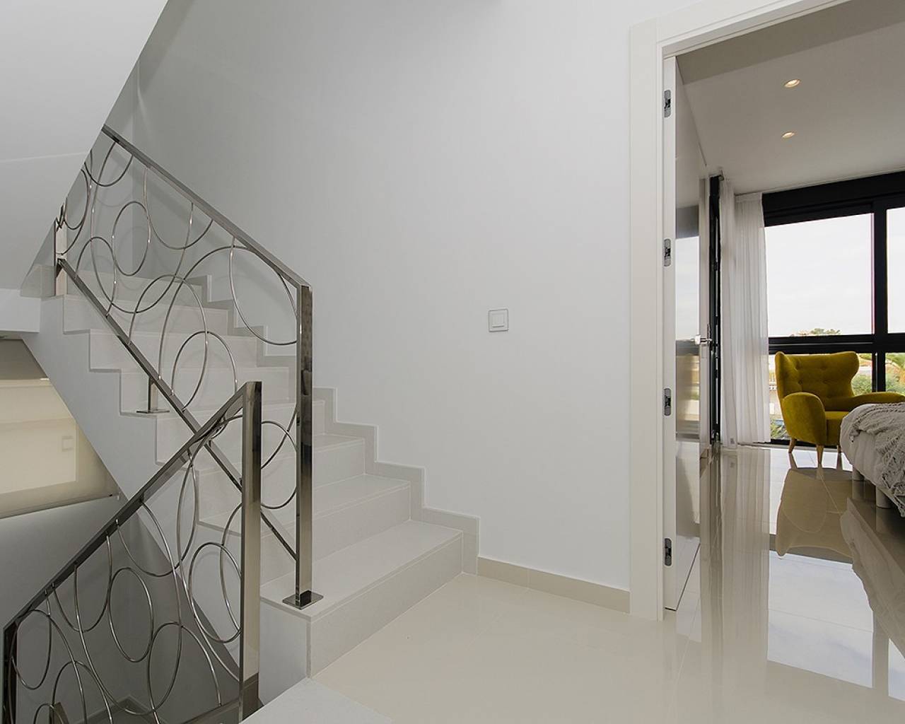 On the first floor there is a large master bedroom with fitted wardrobes, en-suite and a private sun terrace, two further bedrooms with fitted wardrobes and a fully fitted bathroom with underfloor heating. The internal staircase leads up to a rooftop solarium where you can enjoy lovely views and all day sun.