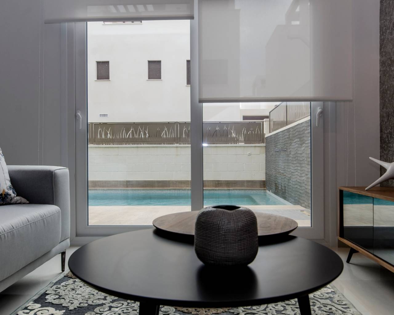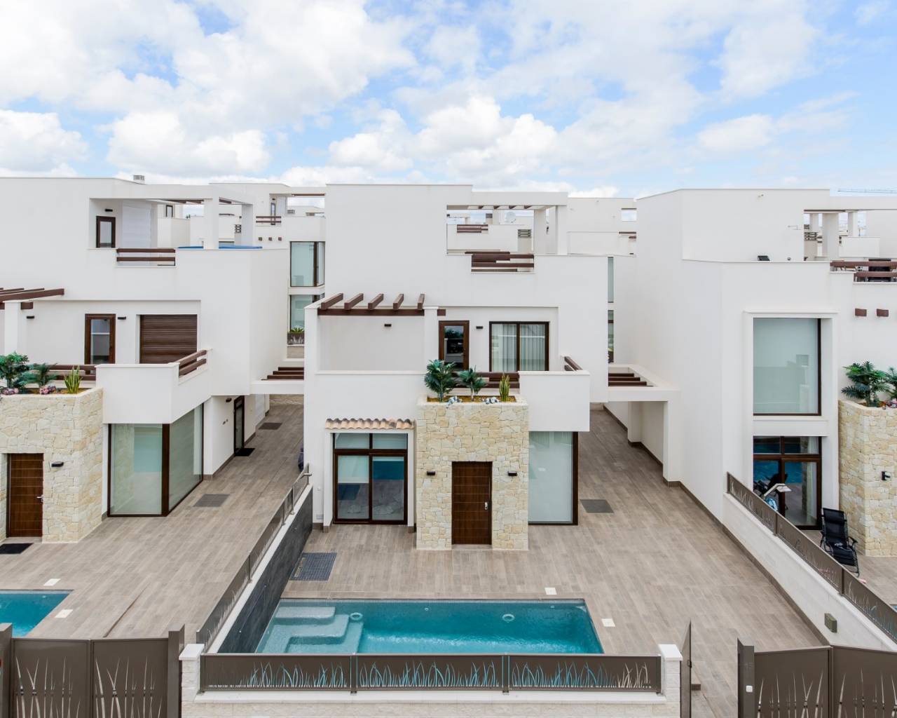Las Lagunas is an exclusive gated development of detached villas with private pools situated in Dona Pepa which is close to Quesada which has a host of bars, shops, supermarkets and restaurants. The villas have 2 different designs, with floor to ceiling windows in the lounge to give light and airy feel or with an upper sun terrace.