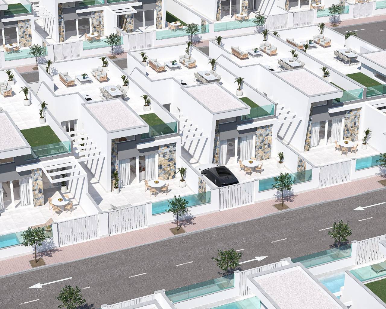 These beautiful villas are built all on one level and include a private pool, pre-installation of hot/cold air-conditioning, rooftop solarium complete with outdoor kitchen, modern kitchen including appliances and LED lighting.