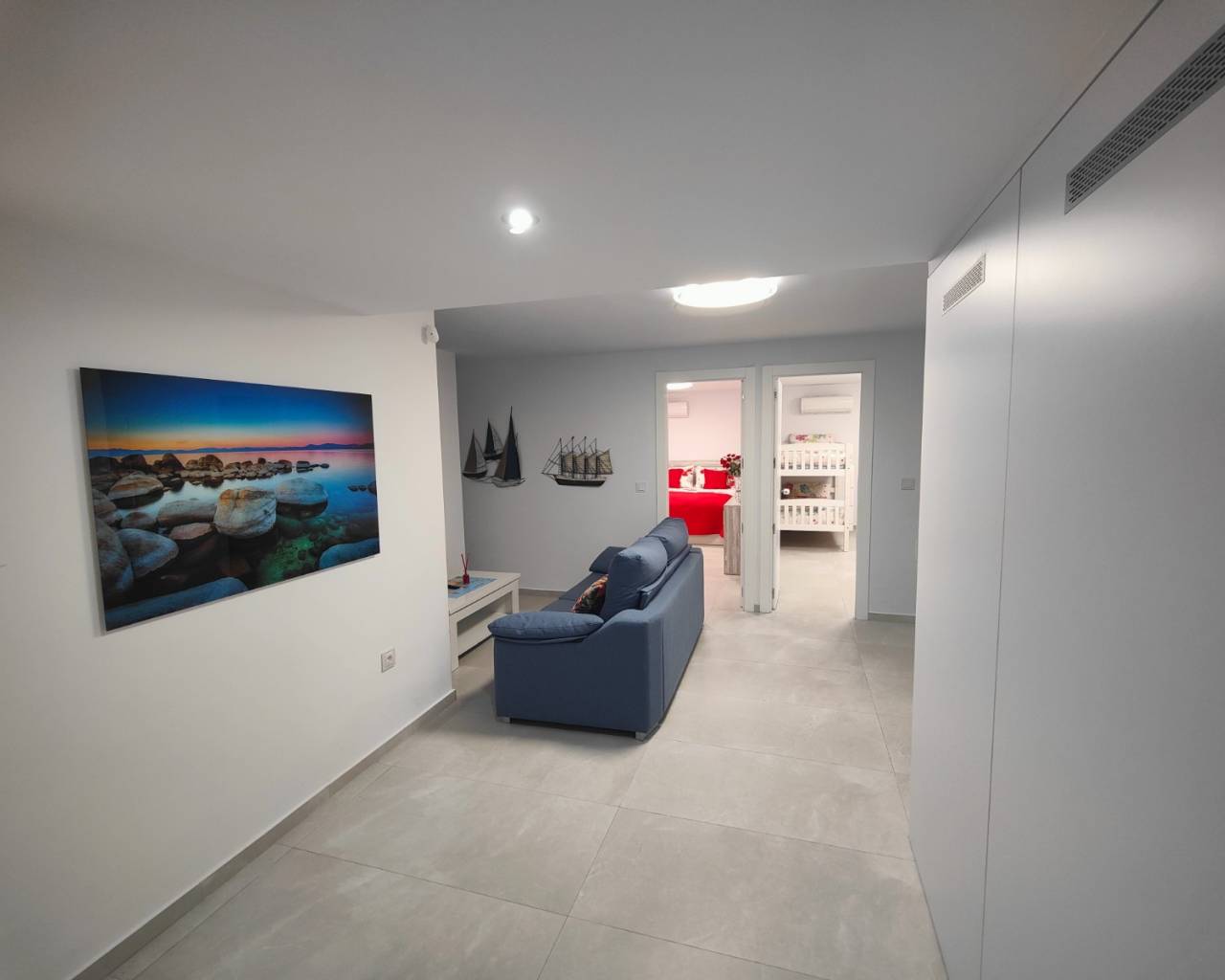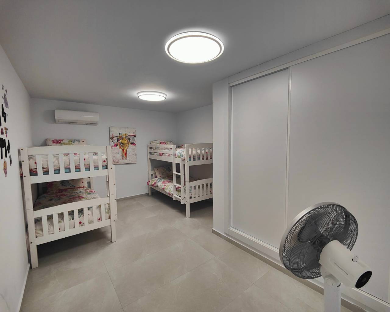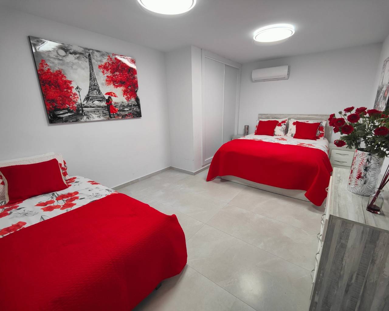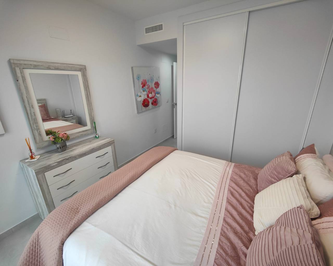 On the first floor there are two further double bedrooms with fitted wardrobes and each has an en suite bathroom and access to the sun terrace with views of the salt lake. There is an internal staircase which leads up to a large 49 m² rooftop solarium with have spectacular views of the Torrevieja salt lake.