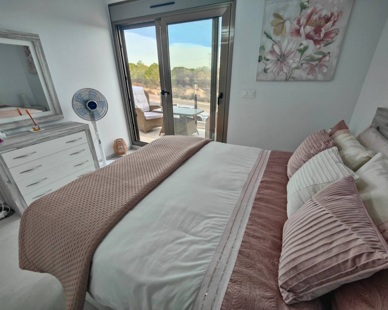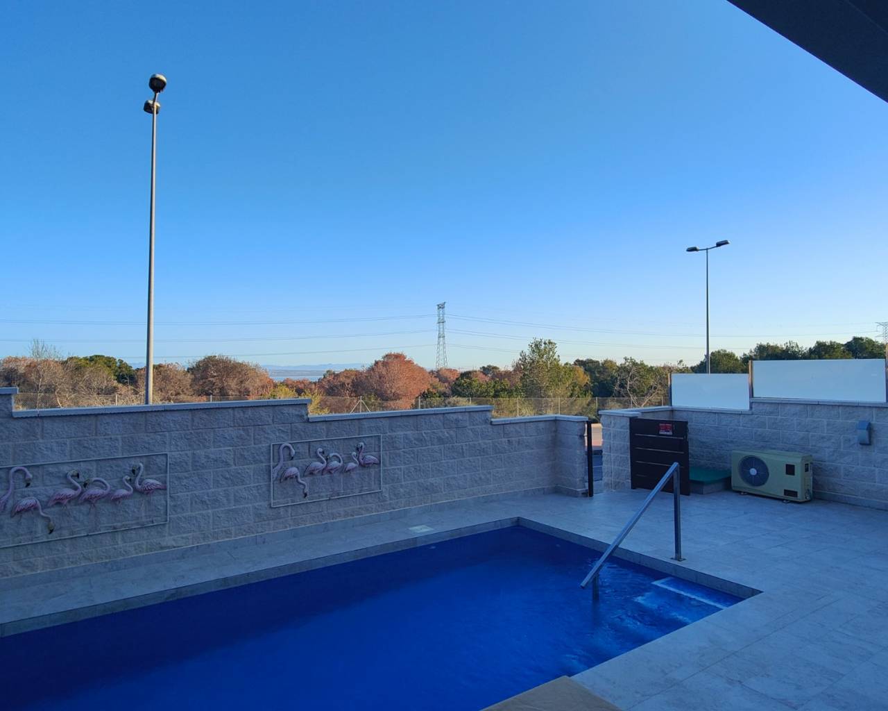 This modern 4 bedroom, 4 bathroom detached villa is situated in the Pau 26 area of Villamartin with uninterrupted views of the beautiful green area and the salt lake. The development is in a quiet residential area, only a short walk from restaurants, bars and shops and a short drive to La Zenia boulevard and the blue flag beaches.