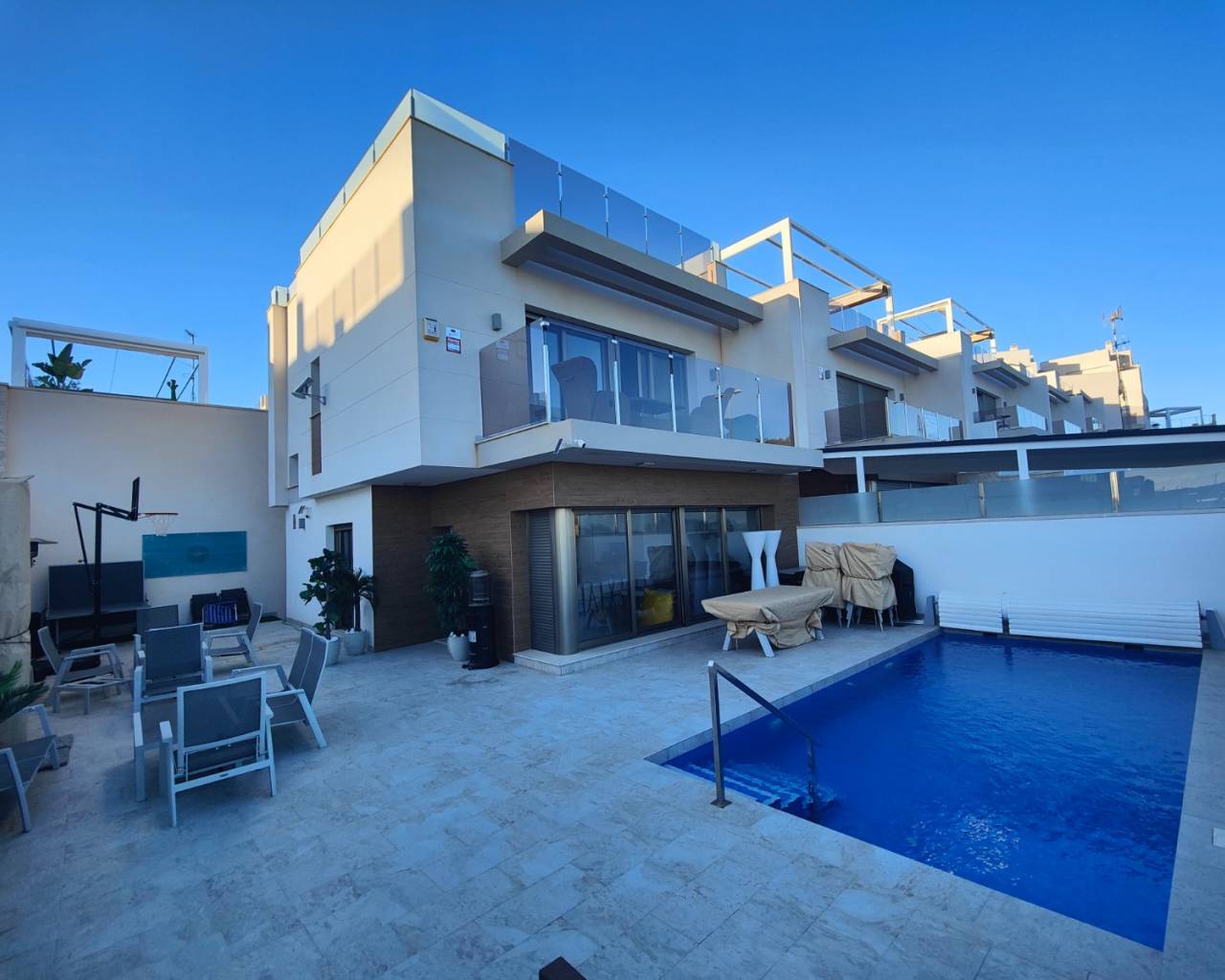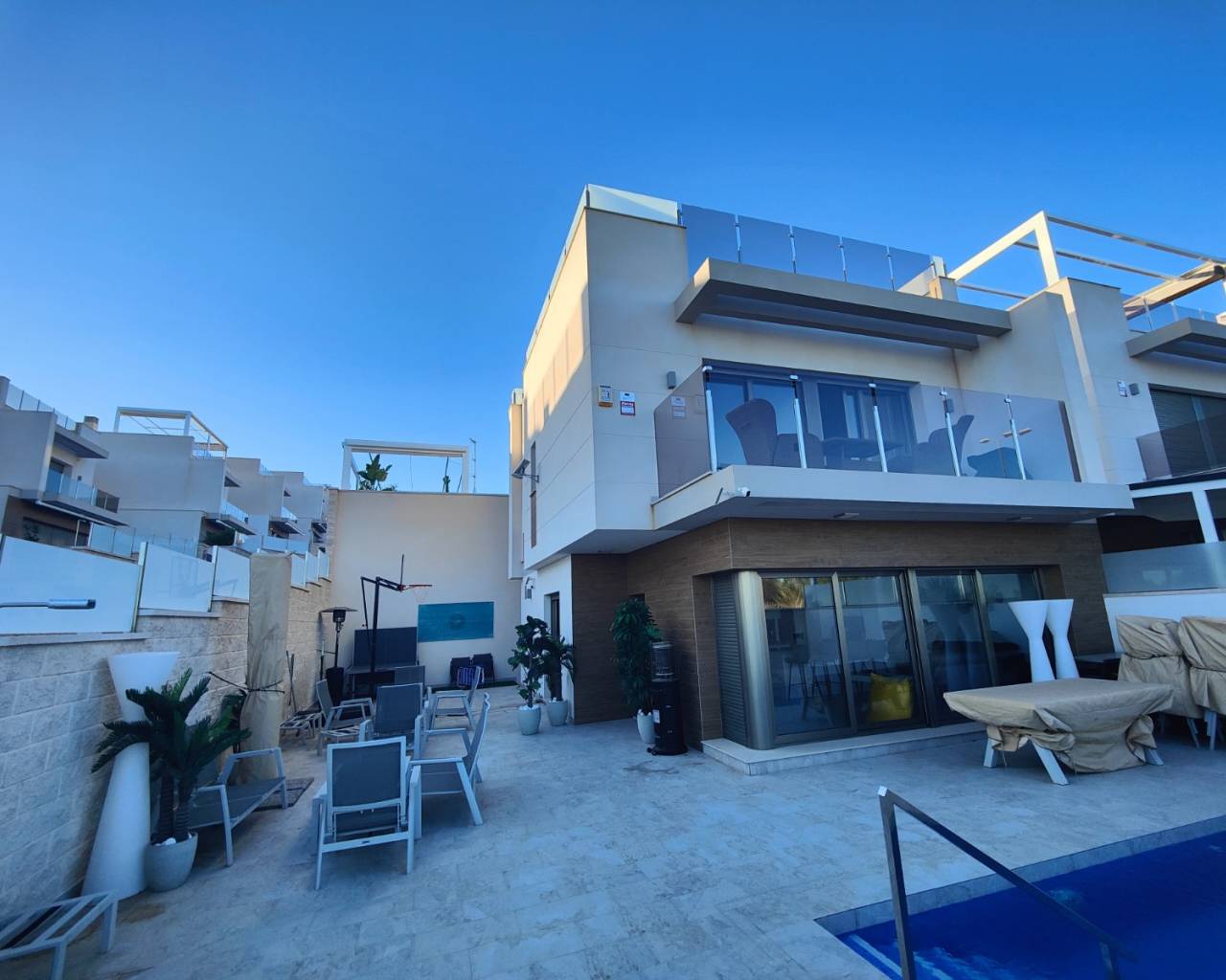 This beautiful villa, built in 2021 is immaculate and includes all indoor and outdoor furniture, Broil King BBQ, heated swimming pool with electric cover, hot/cold air-conditioning, modern kitchen including appliances, alarm system with cameras, electric shutters, LED lighting throughout and a rooftop solarium.