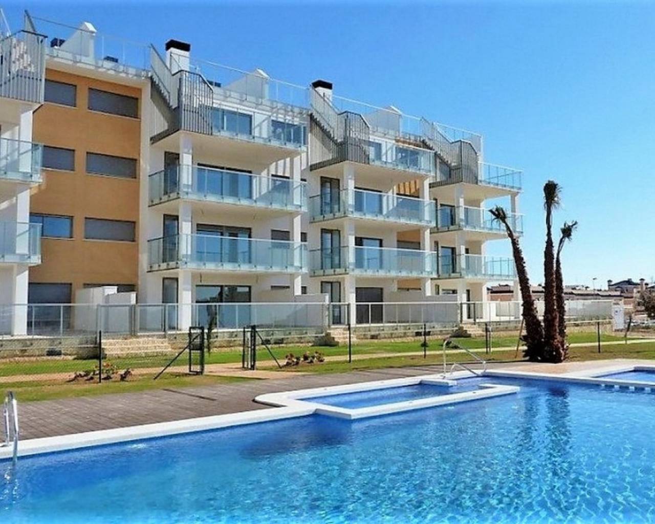 Villamartin Gardens is a luxurious complex situated in Los Dolses just a short walk from the Villamartin plaza and La Zenia boulevard shopping mall. This secure gated development has a selection of 2/3 bedroom apartments, landscaped gardens, 3 swimming pools 1 of which is heated for all year round use, lifts, jacuzzi and secure underground parking with storage room is also included in the price. There are ground floor apartments with garden, 1st/2nd floor with large terrace and penthouse options with private rooftop solarium.