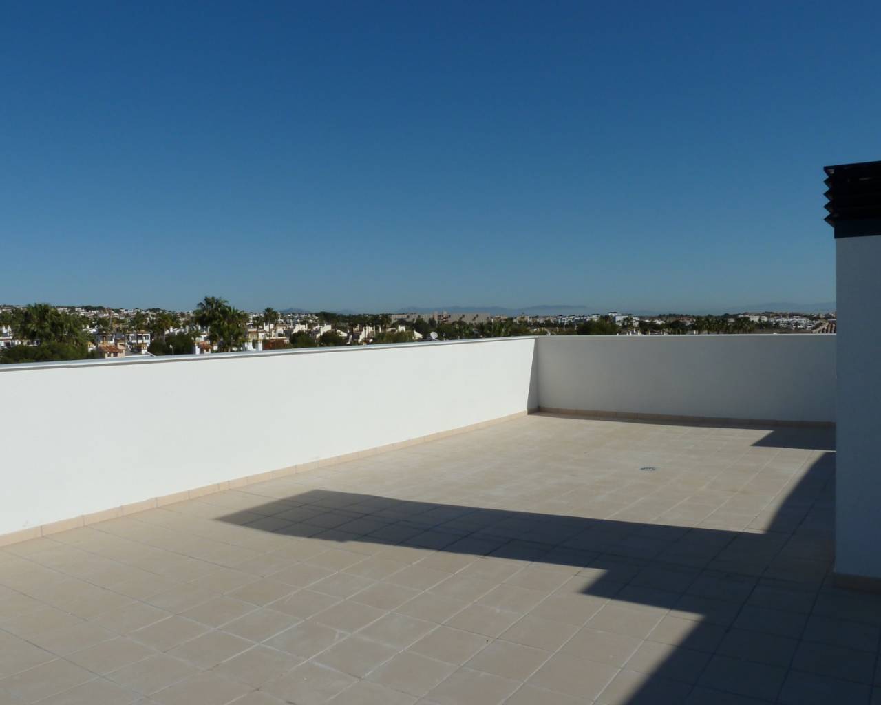 This penthouse apartment comprises of a good sized lounge with patio doors leading out onto the large south facing sun terrace, dining area, fully fitted modern kitchen with appliances including oven, hob, extractor, fridge/freezer, washing machine, dishwasher and microwave, a master bedroom with fitted wardrobes and en-suite, two further bedrooms also with fitted wardrobes and a guest bathroom. A staircase from the terrace leads up to a huge rooftop solarium where you can enjoy sea views and all day sun.