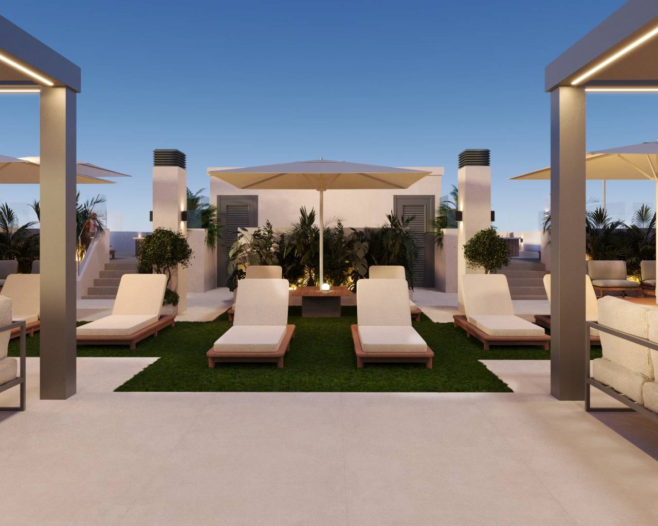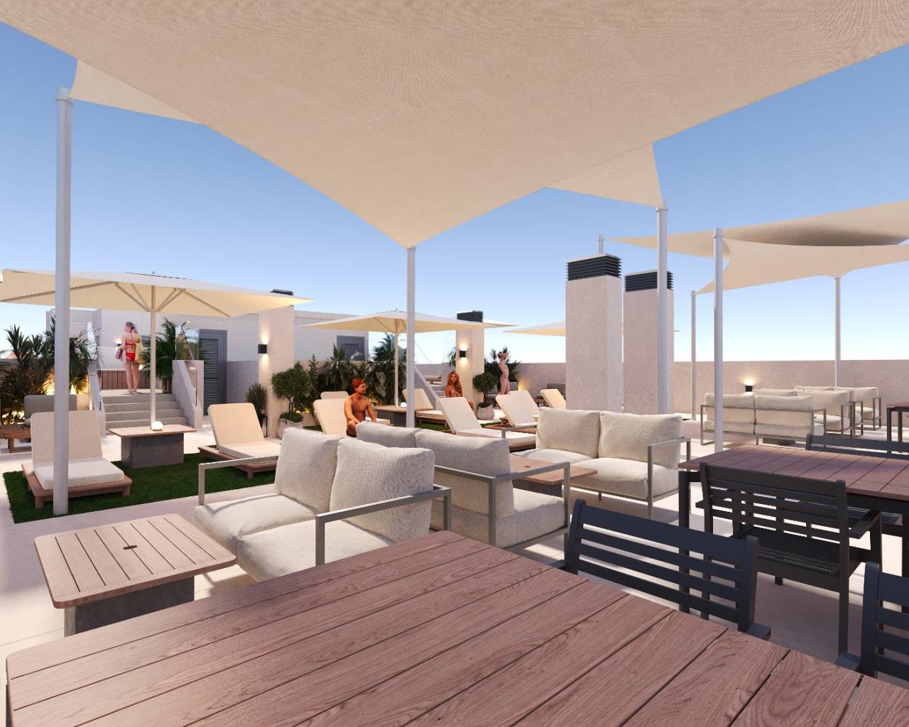 These A rated efficient properties are built to the highest standard and have lovely recreational areas with children's playground and a superb rooftop communal area with swimming pool, sunbeds and seating.