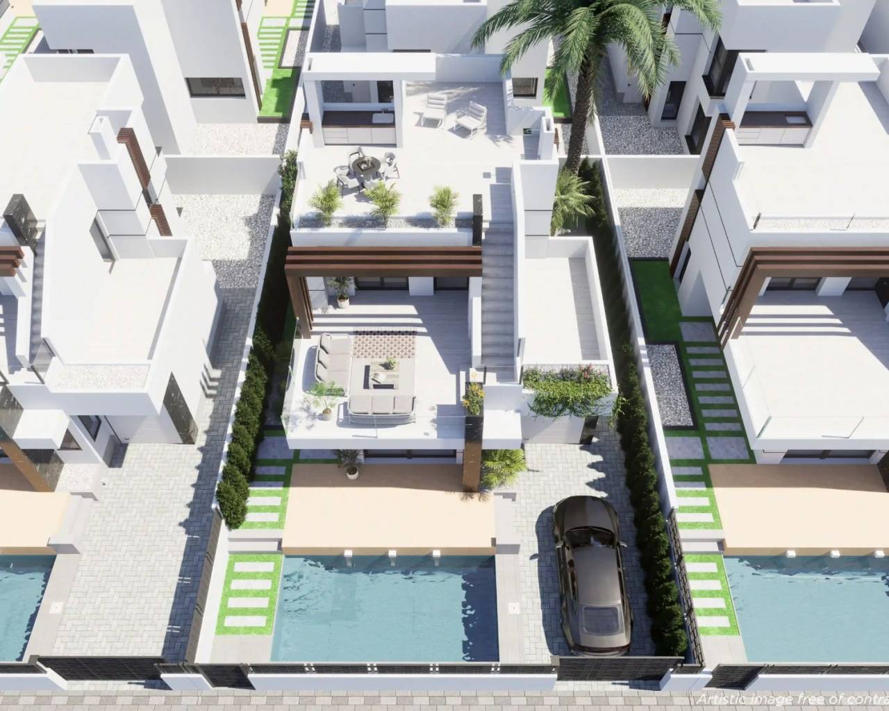 These luxurious Petra villas are located in the heart of Los Alcazares, a short walk from the stunning beach, beautiful promenade and a host of amenities including supermarkets, shops, bars, banks, supermarkets and a wide selection of restaurants.