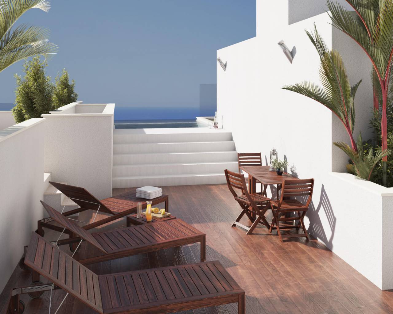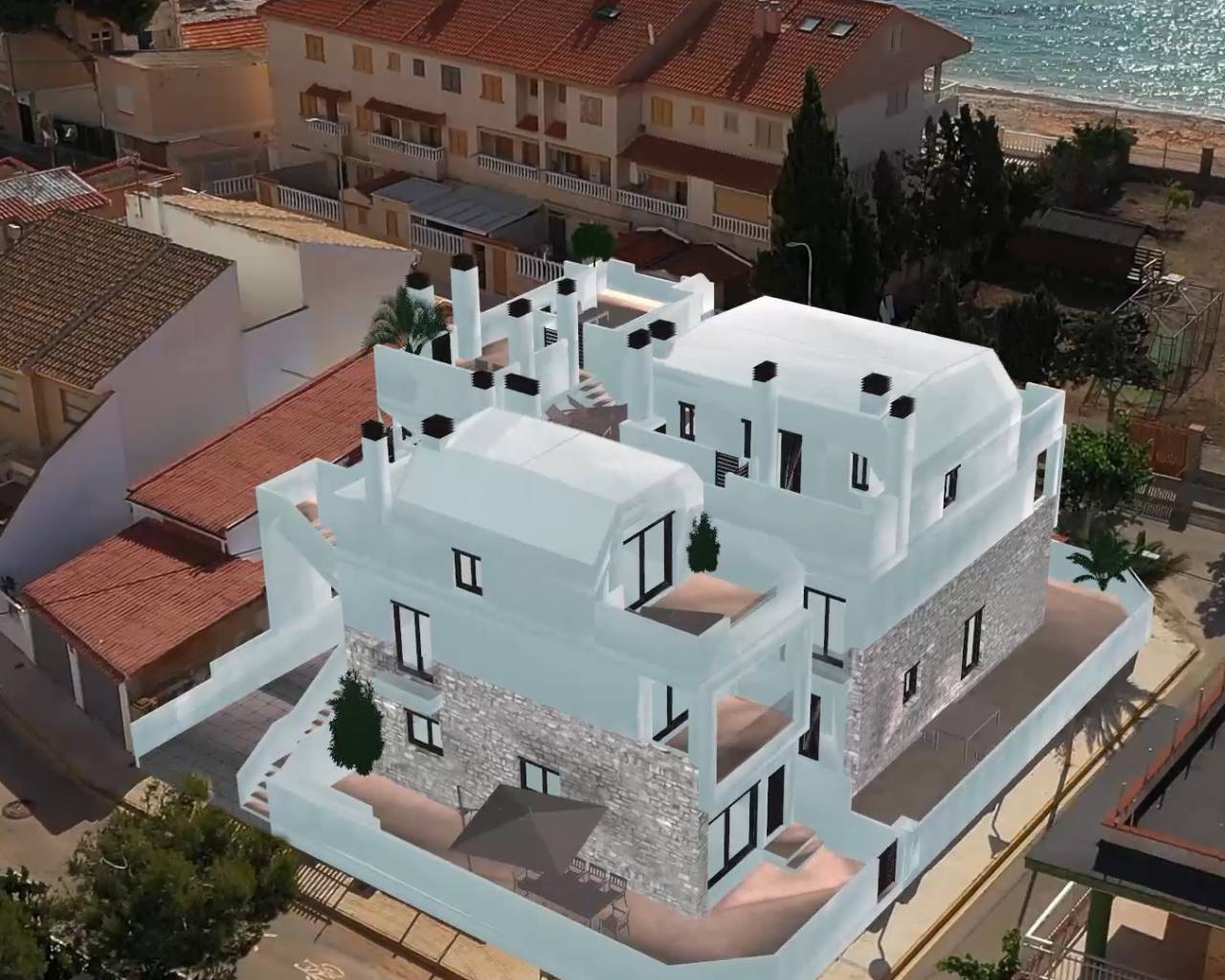 Porto Marina 6 is a brand new development of 6 townhouses is located in Torre de la Horadada only 50 metres from the beautiful beach, a short walk from the marina, promenade, new commercial centre and a host of amenities including banks, supermarket, bars, shops and restaurants. There is also a communal rooftop infinity pool, outdoor kitchen and secure underground parking is also included.