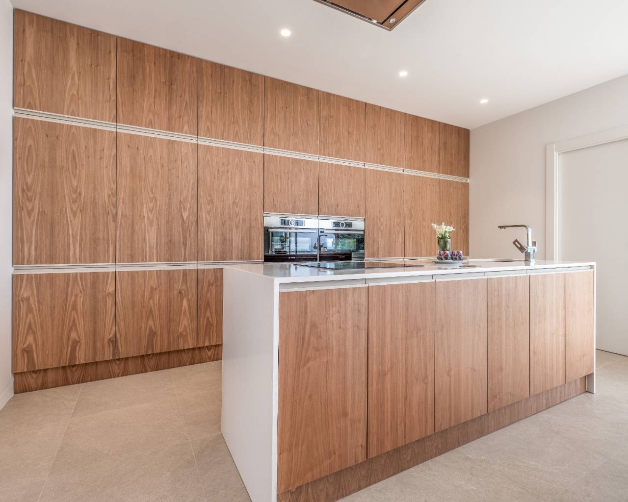 There is the staircase which leads down to the 60 m² under build with laundry area and garage door for the car which has an electric door.