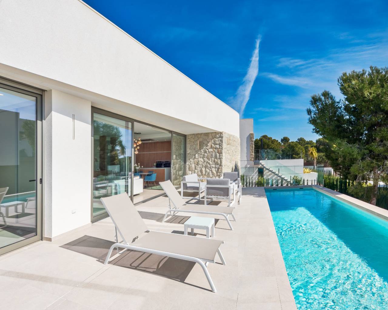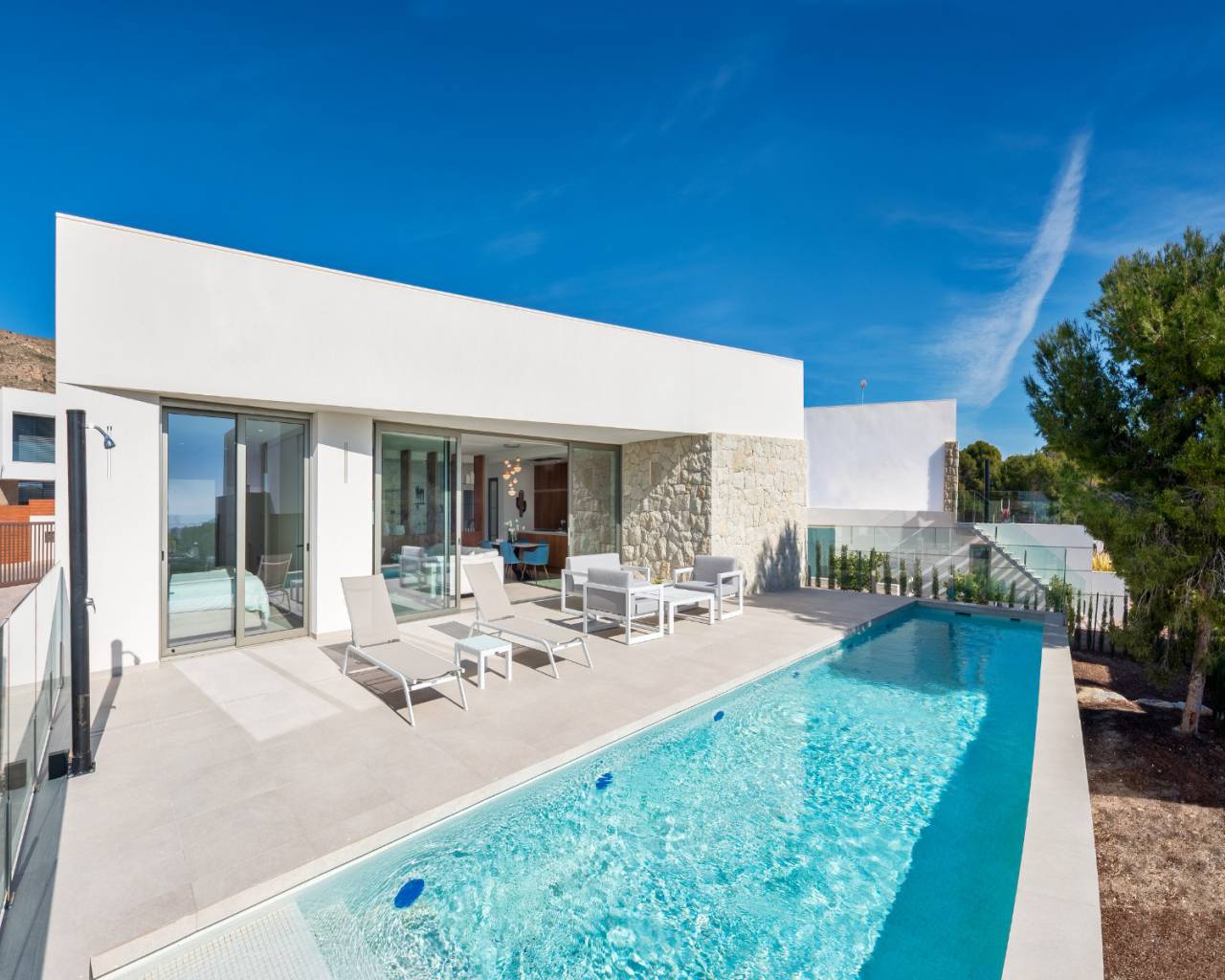 This key ready villa comes complete with large 13 x 2.8 m private pool, hot/cold vented air conditioning, large under build with garage, LED lighting, fitted kitchen appliances and landscaped gardens with irrigation system.