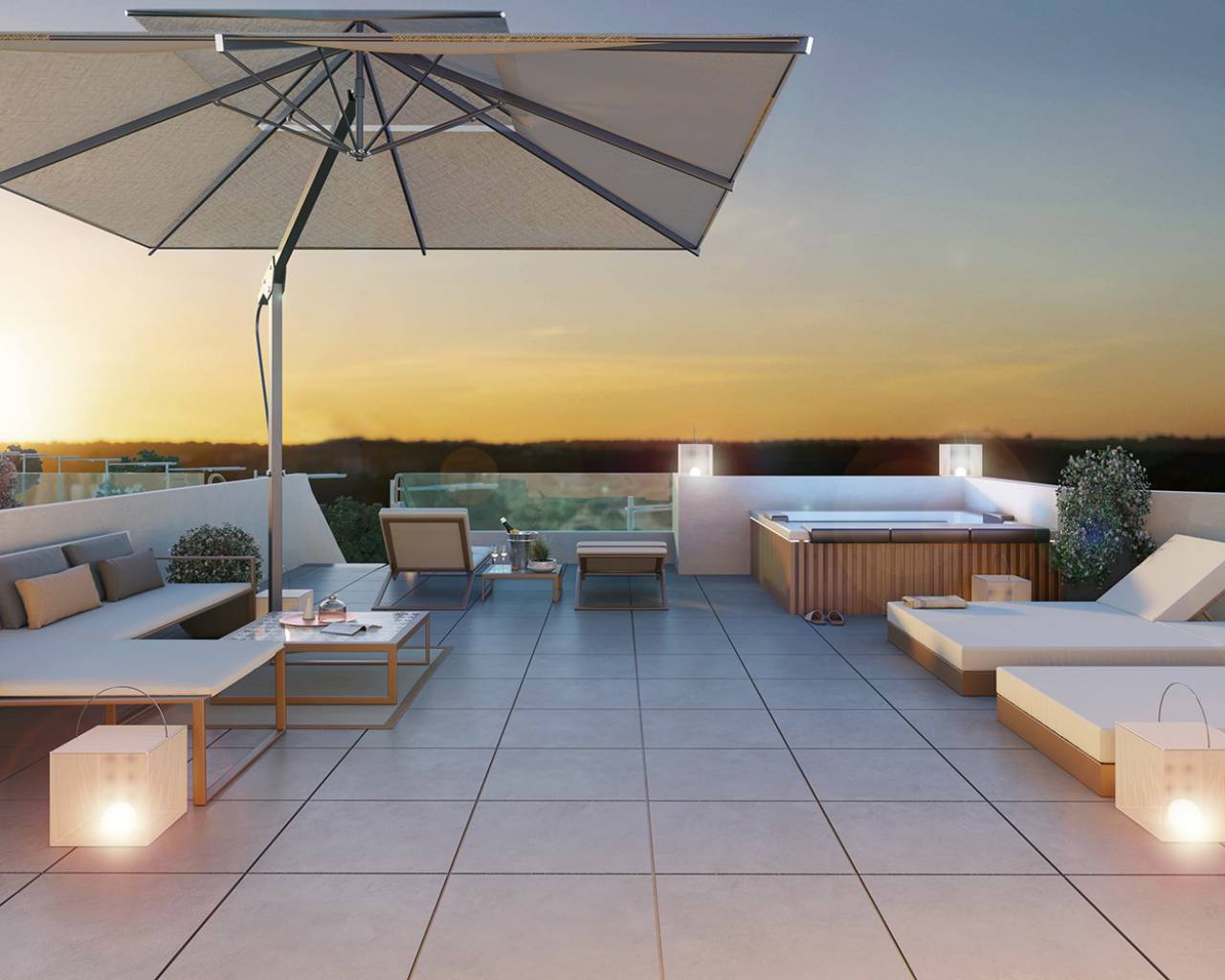 Residential Sunplace 2 is a secure gated complex which includes landscaped gardens with palm trees, communal pool, gym, storage room and secure parking. There are ground floor apartments with private garden and penthouse properties with rooftop solarium available.